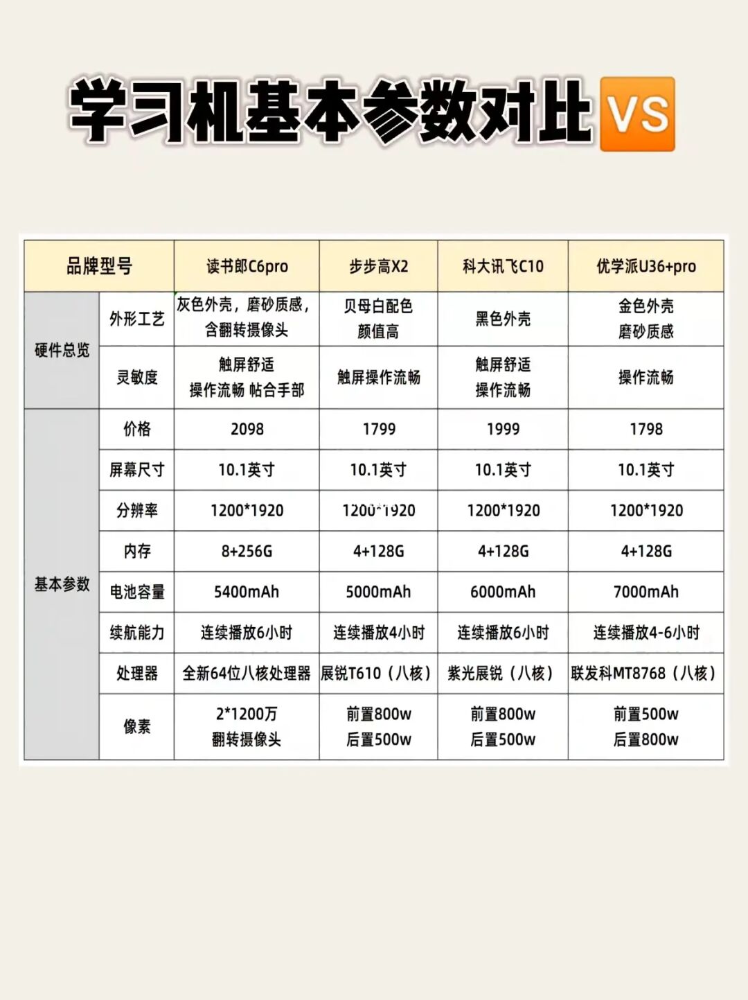 这次的测评包含价格,基本参数、助学资源、亮点功能等几个方面,具体的对比数据都整理在图上啦!