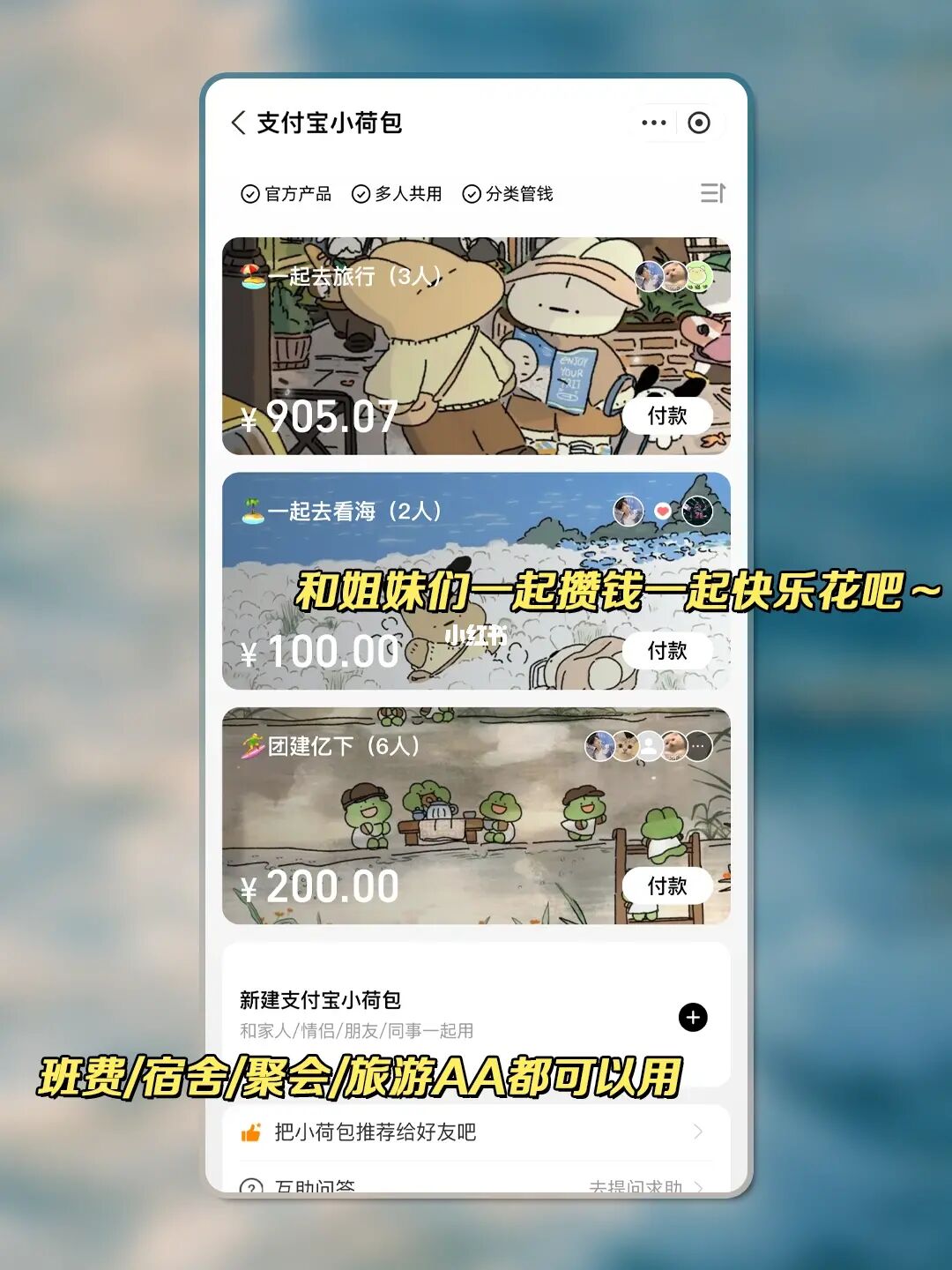 [种草R]支付宝搜“支付宝小荷包”,建立一个“多人用”小荷包,再把你的搭子们拉进来~