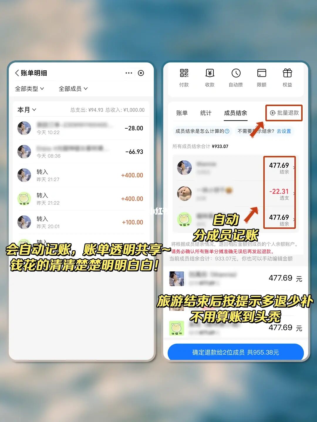 [种草R]旅行结束后也不用算账到头秃!每笔账单都能灵活选择分摊的人和钱,AA的钱从个人预存的经费里自动扣掉,直接省了群收💰、算账,一分都不会搞错,精确到小数点后两位的那种哦~不管大笔支出还是小笔支出,💰多还是钱少,都没必要自己张口要了,一点也不尴尬还贼省事~i人狂喜[哇R]