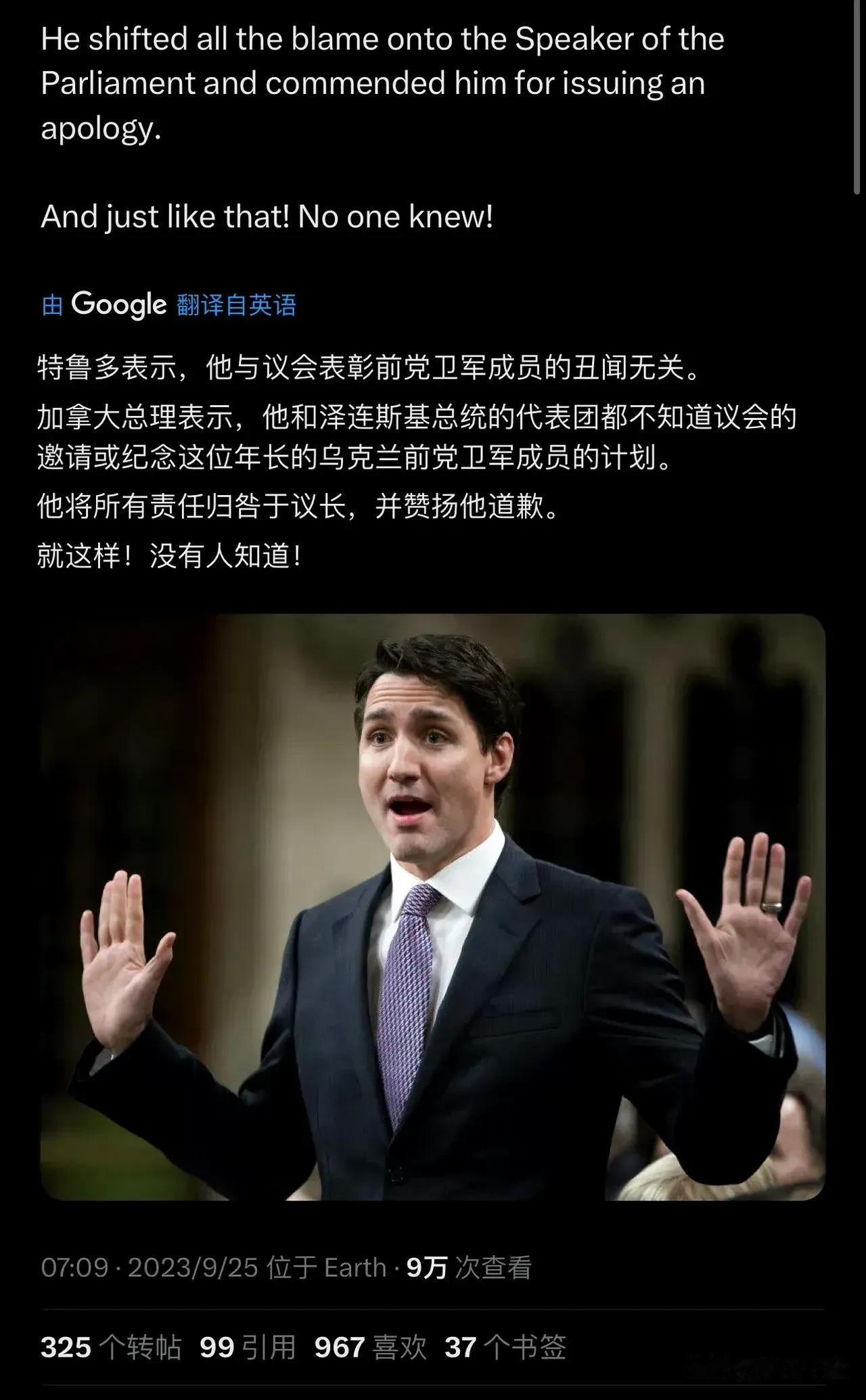 突发!泽连斯基、特鲁多和加拿大议长为纳粹鼓掌事件已迅速成为加拿大的重大政治丑闻和