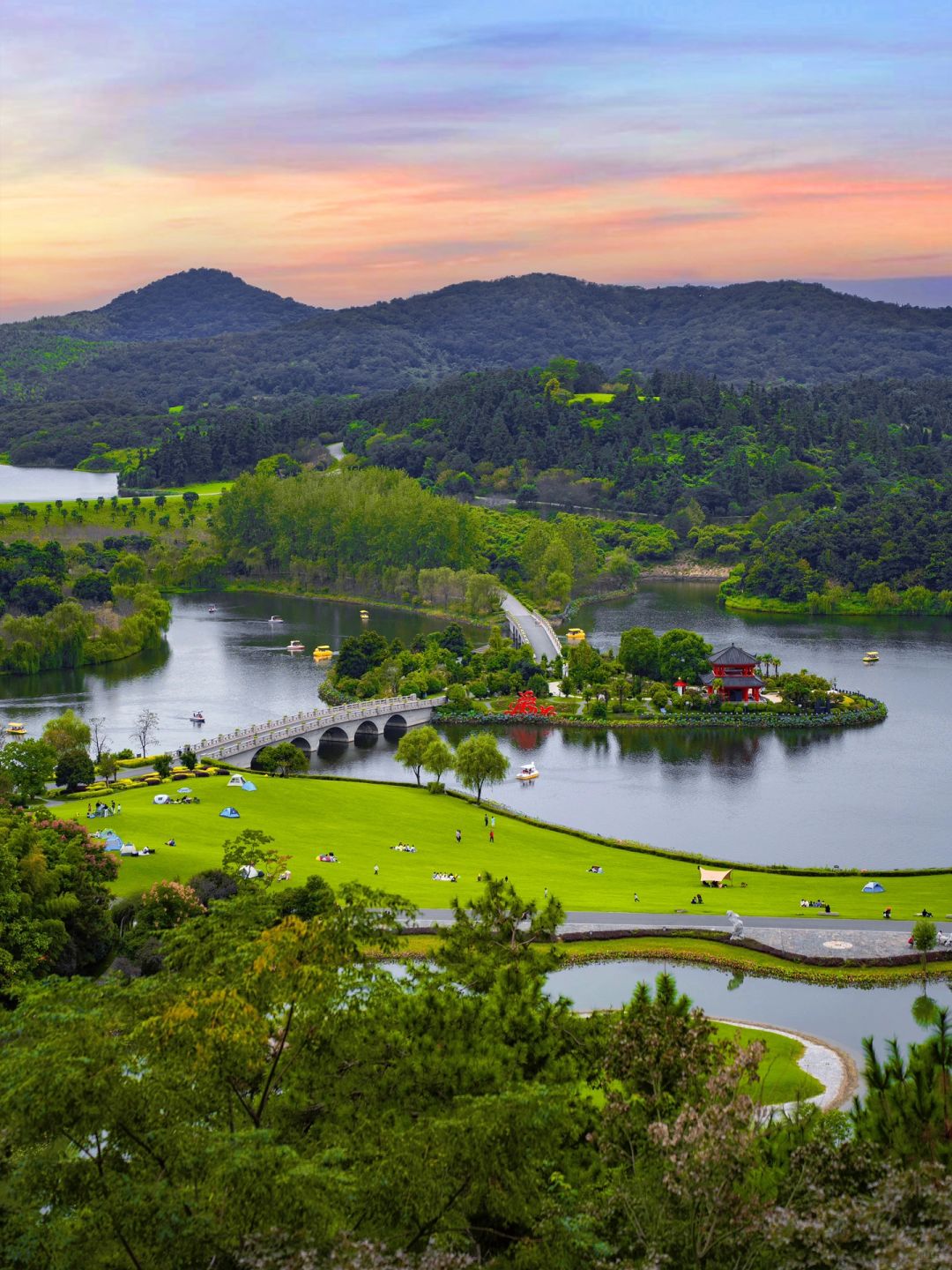 不得不说生态园太美了,眼看高尔夫球场级别大草坪、山峦叠嶂与大小湖泊,怎么拍都能拍出国外度假感觉~
