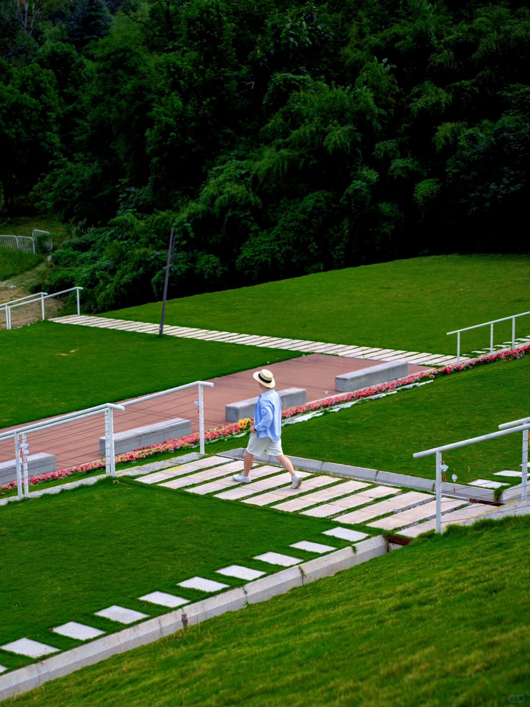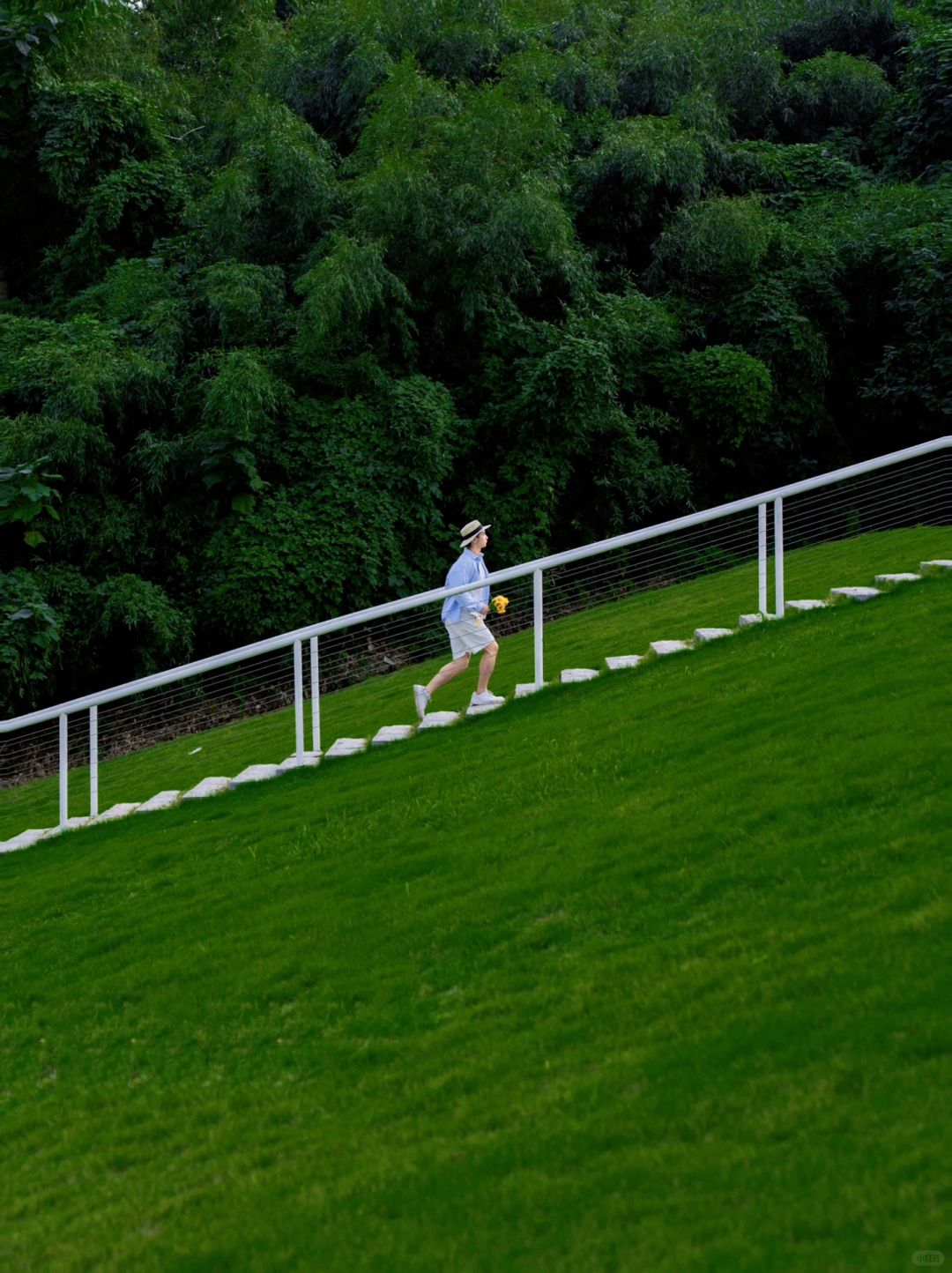 入口往里走会看到超出片的绿色草坪➕白色楼梯,怎么拍都好看~上了山坡会看到眼前的一大片佛手湖,坐在草坪上吹吹风看夕阳西下,是我能想到坠浪漫的事情了~