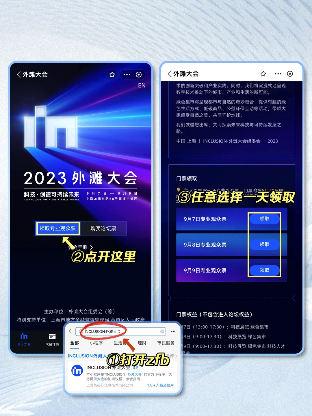 叽富堡🔍「外滩大会」,就能领取🆓的专业观众票!如果想参加论坛的话,也可以买论坛票~