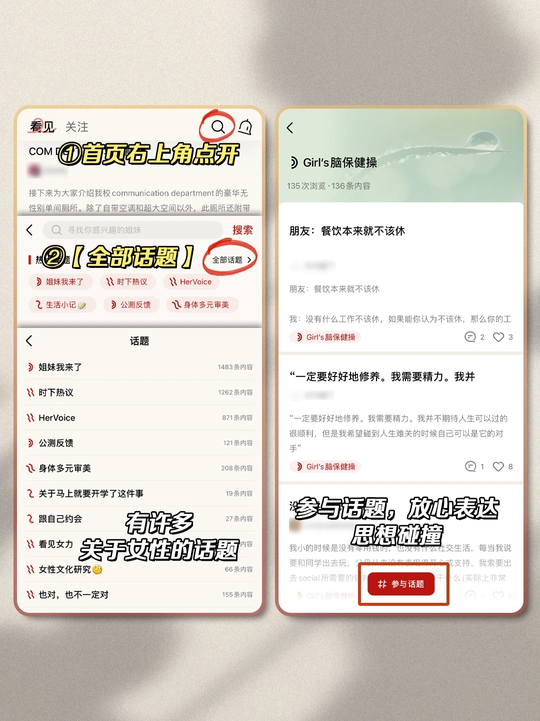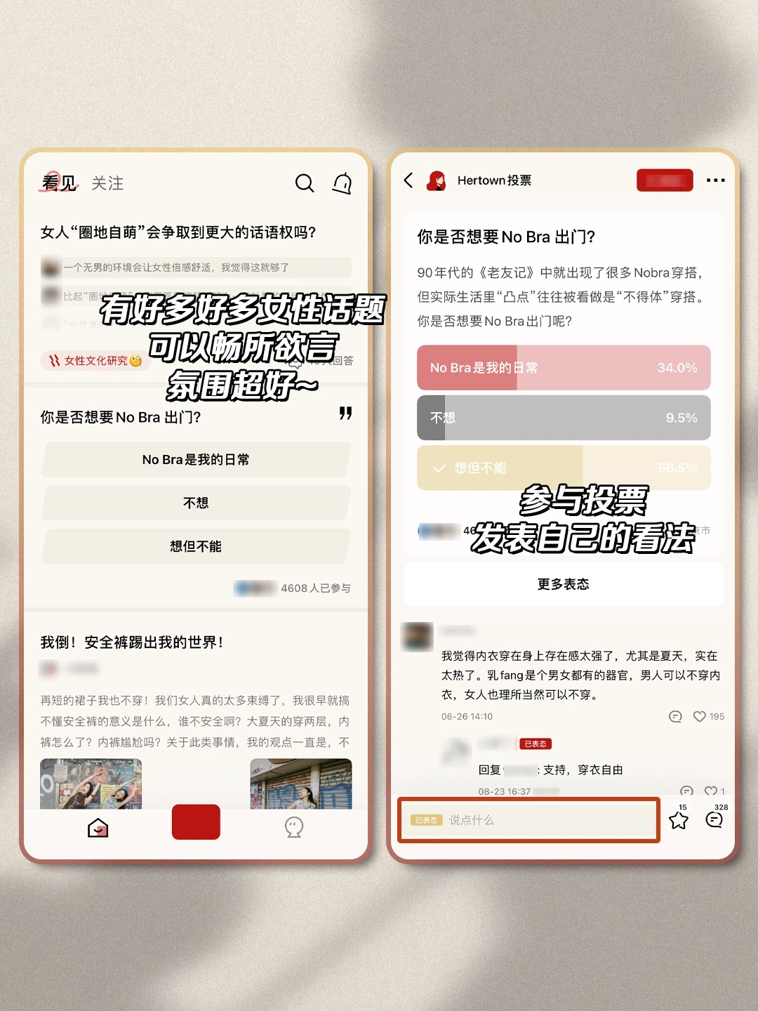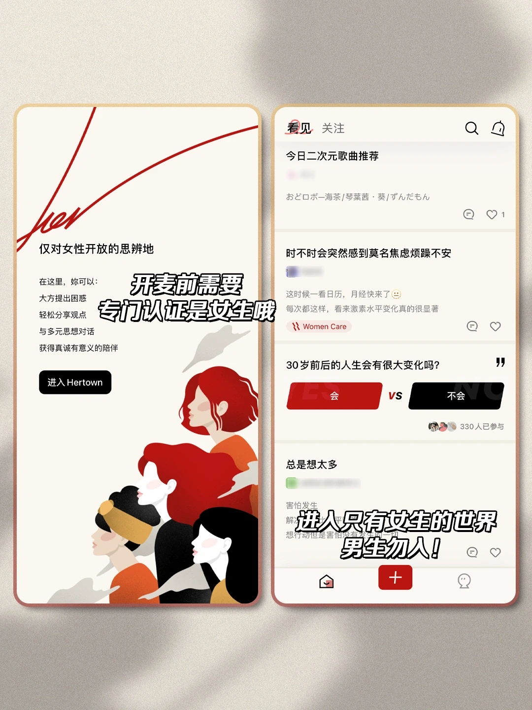 [种草R]可以放心开麦。有各种各样的话讨论,可以选择自己的观点,也表达自己的态度。在没有男生的空间里畅所欲言,有大学时候女生寝室的感觉了谁懂啊!!
