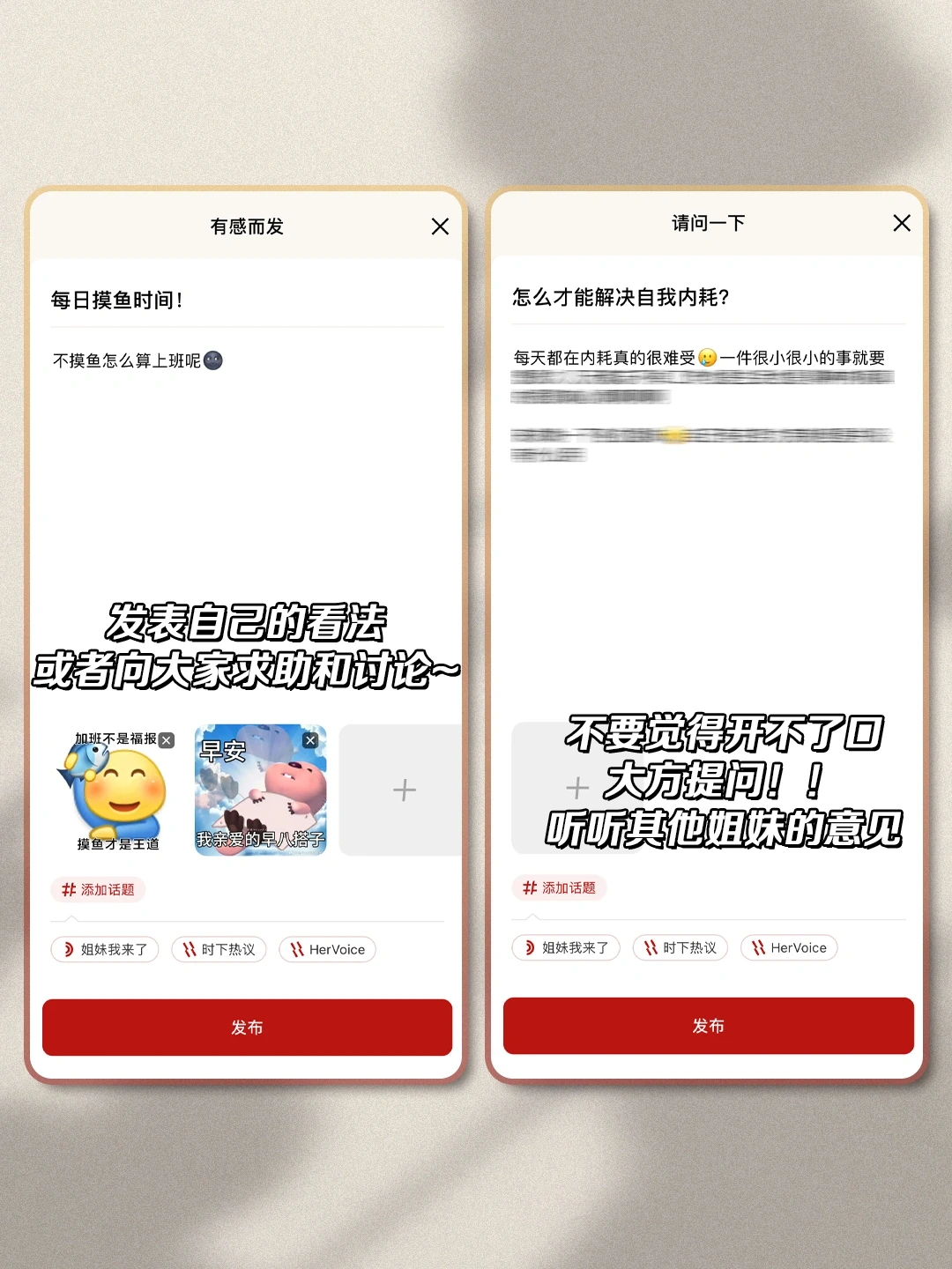 [种草R]可以解决困惑。向大家求助和讨论~不用担心不好意思问,很多姐妹会根据自己的经历提出建议,这就是girls help girls的力量!