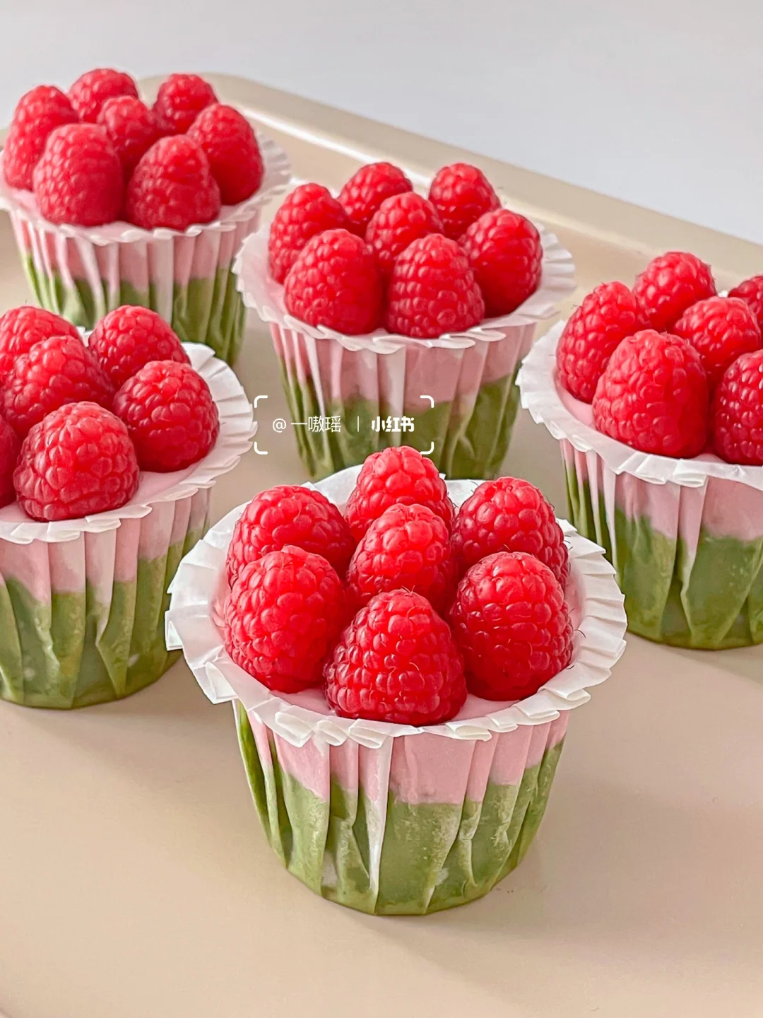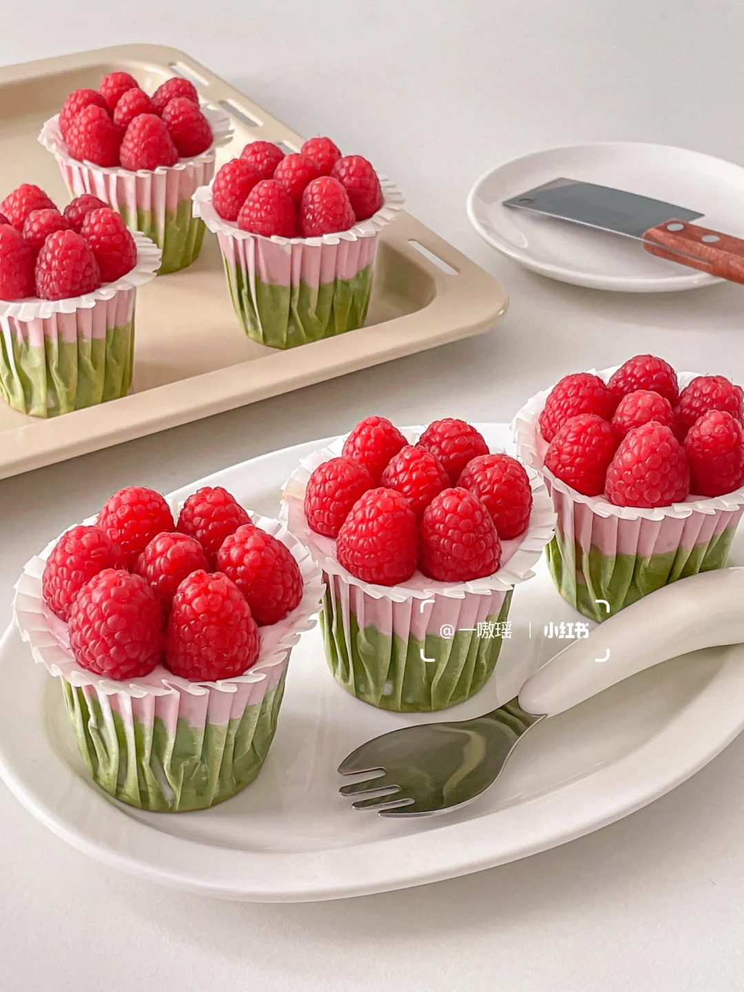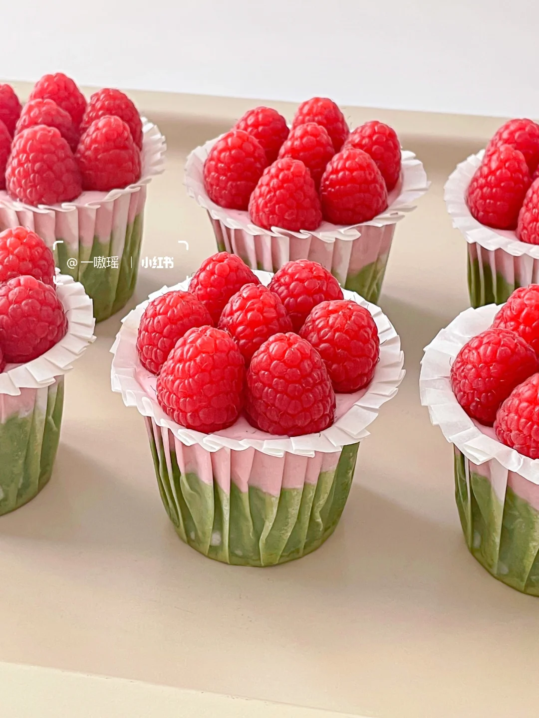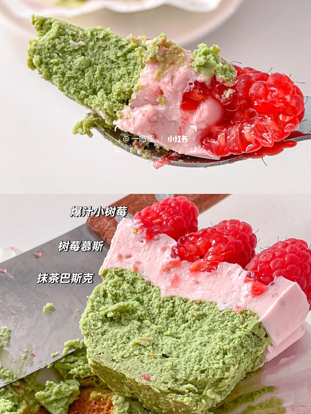 「抹茶+树莓」双重口味纸杯巴斯克,颜色清新