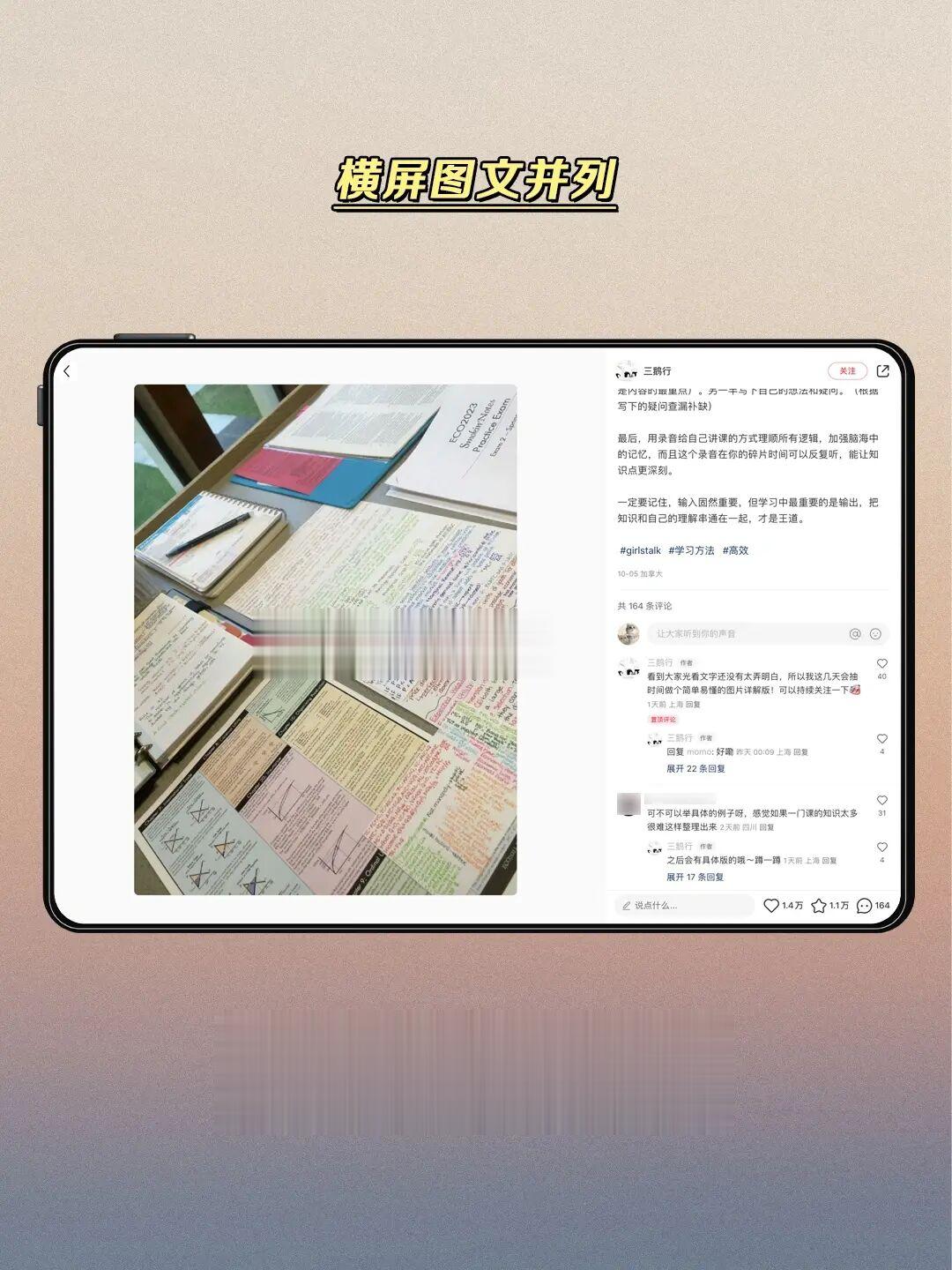 [种草R]Pad版可以横屏,笔记图文、视频和评论并列,能一边看视频,一边看评论,和小伙伴一起交流学习心得~