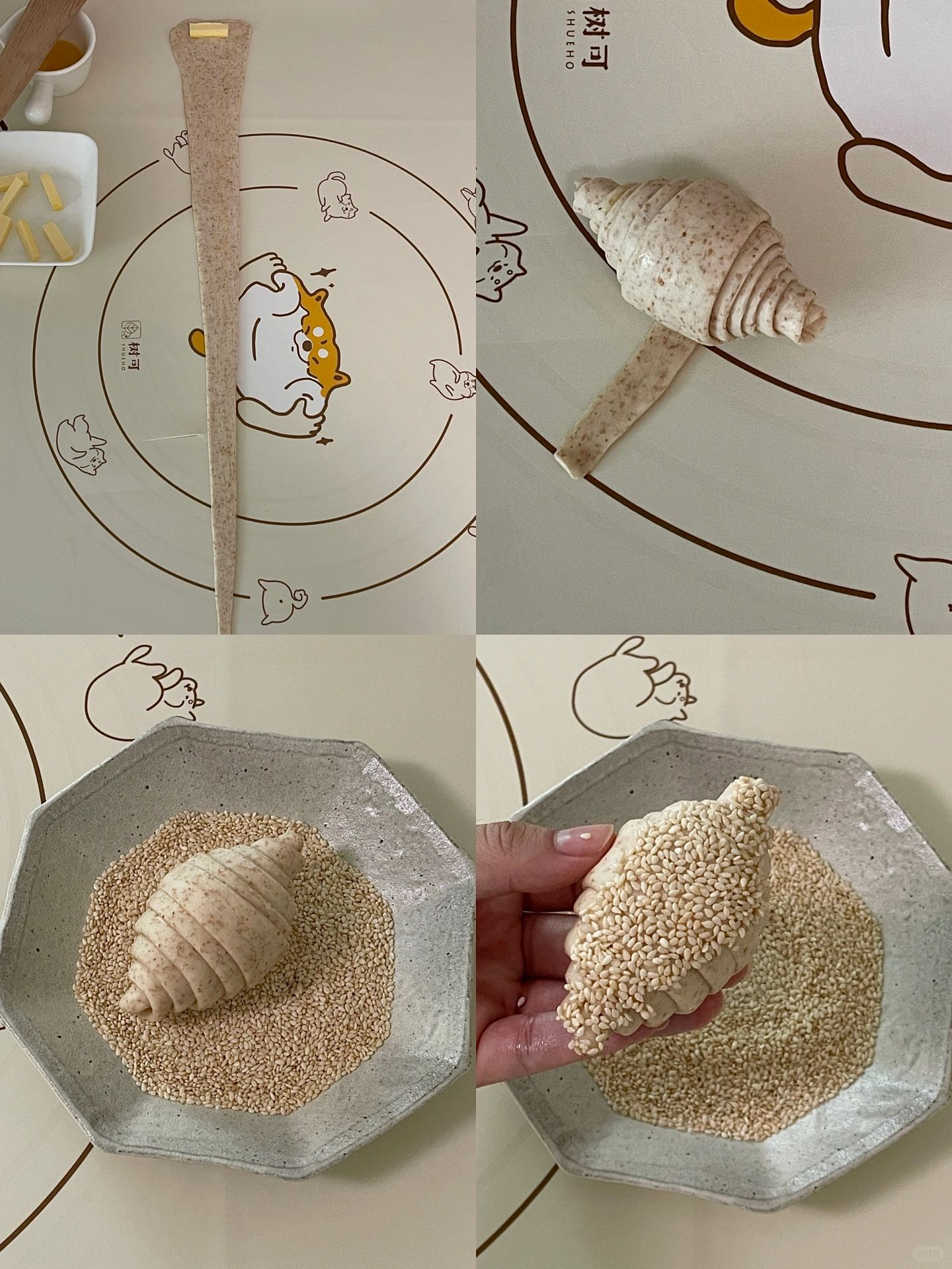 起来,不要卷太紧了‼️烤出来才会有漂亮的分层~