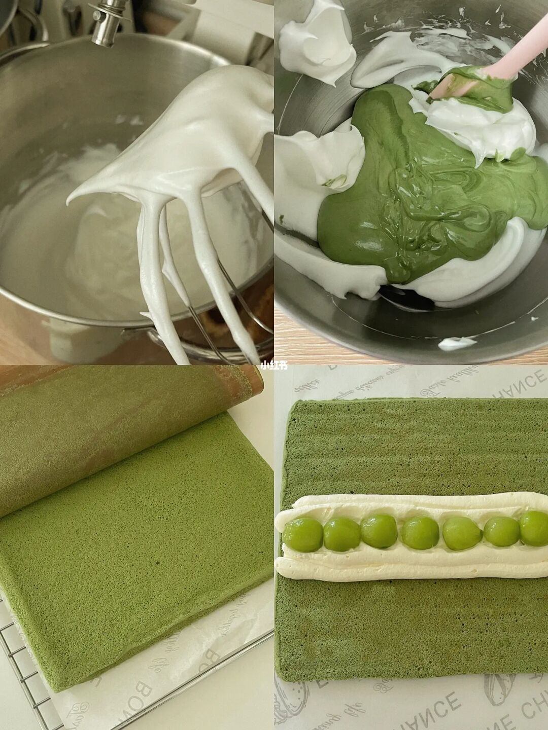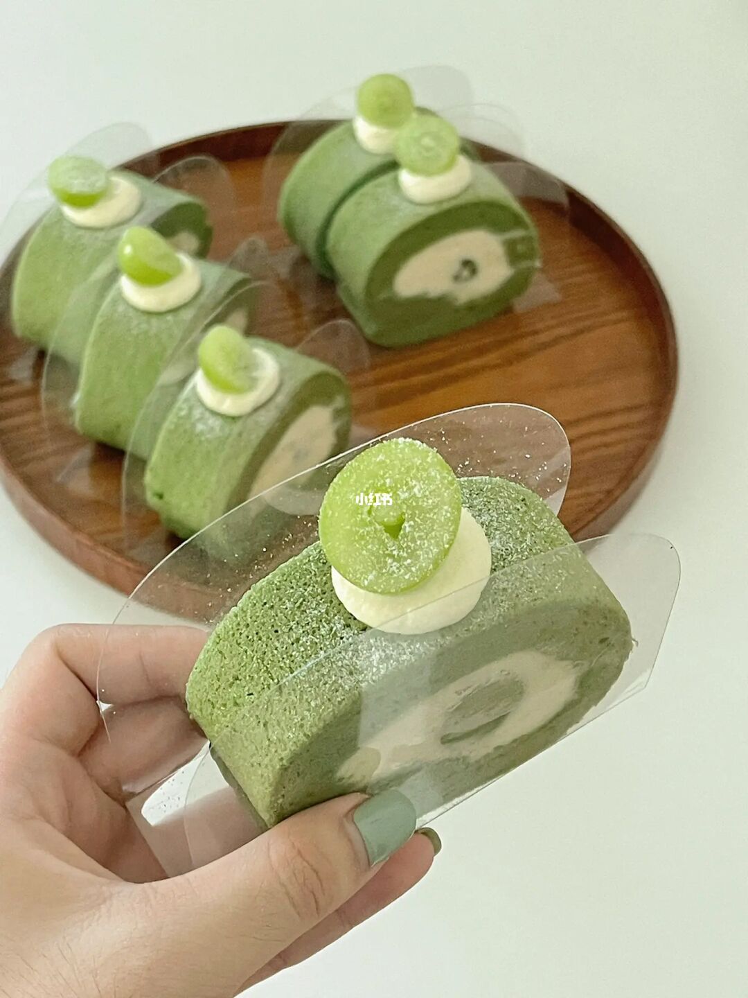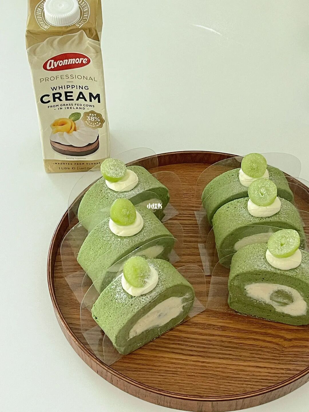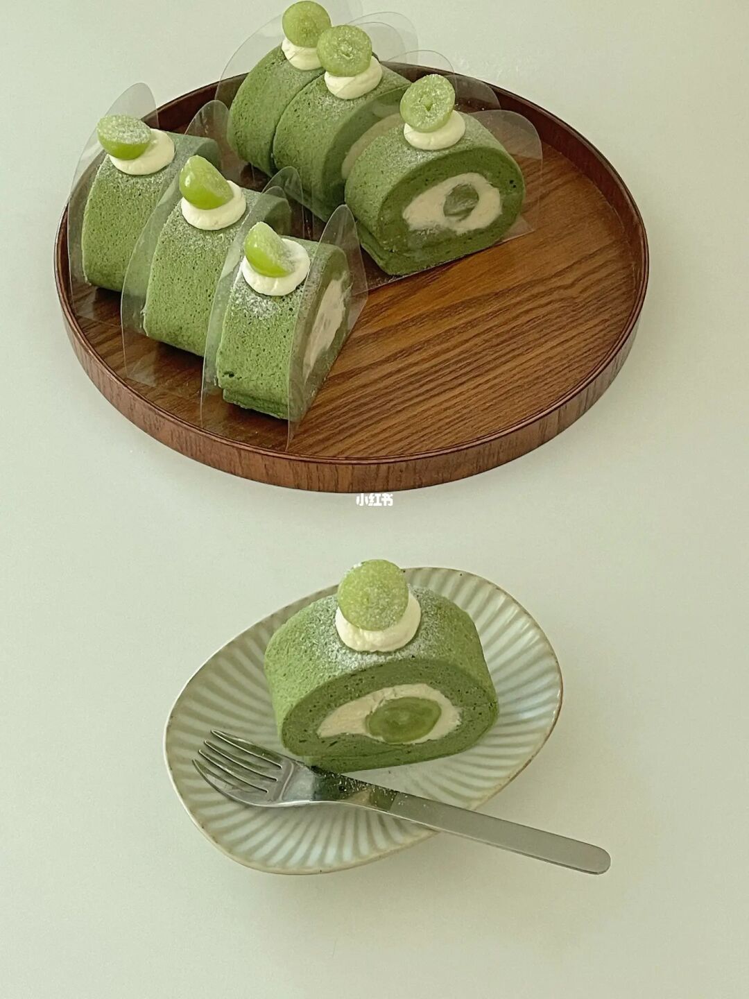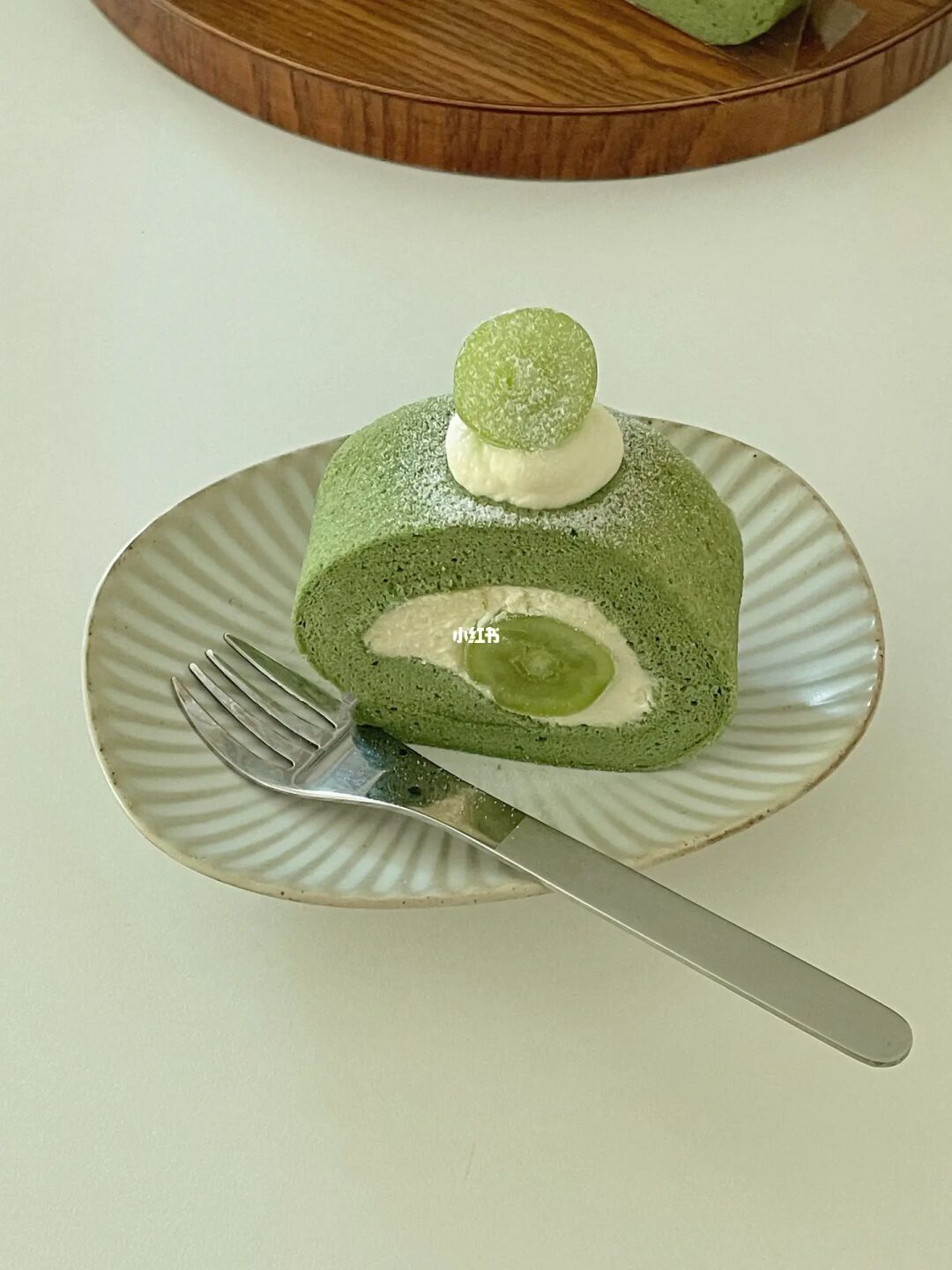 一抹明媚的绿,每次做抹茶卷心情就很好~