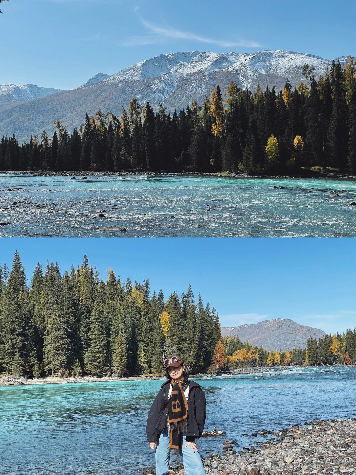 💙首先从换乘中心—码头,约3km,简单易走没有爬升,一路上景色都是河滩,深蓝浅蓝交错的河水,对面的森林,背后的雪山,真的让我陶醉在此挪不开眼。要是时间还充裕的朋友到了码头可以继续往前走欣赏湖边广阔的景色。
