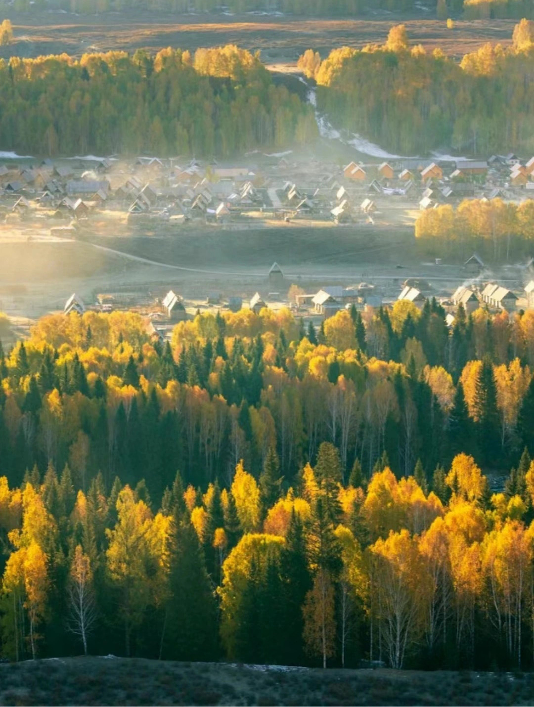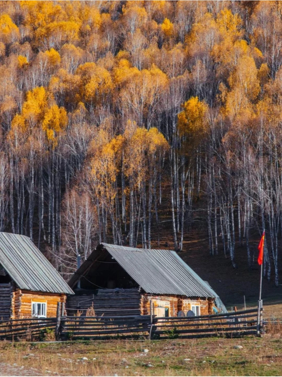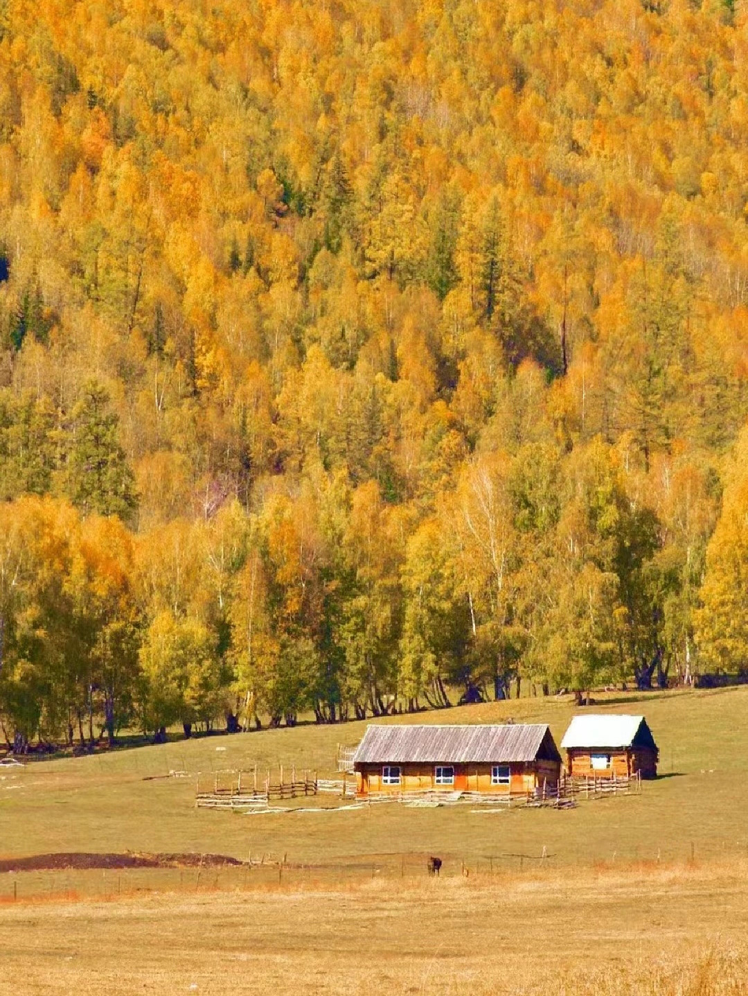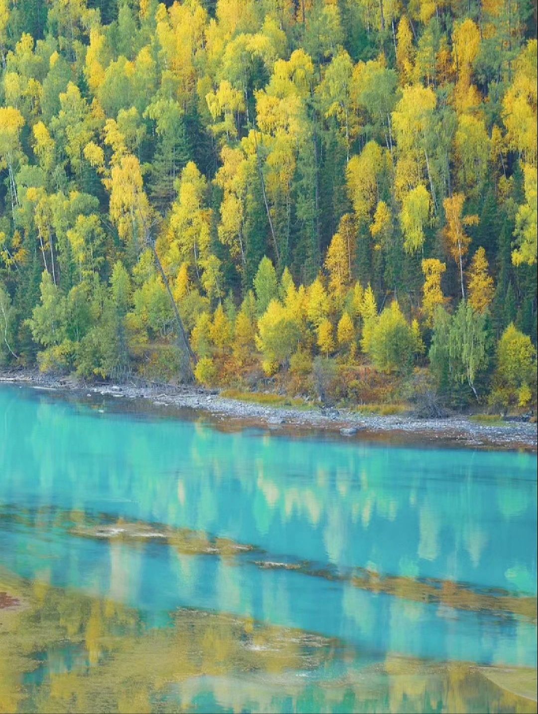 喀纳斯的秋天美得不像话金色白桦林、碧绿的湖水