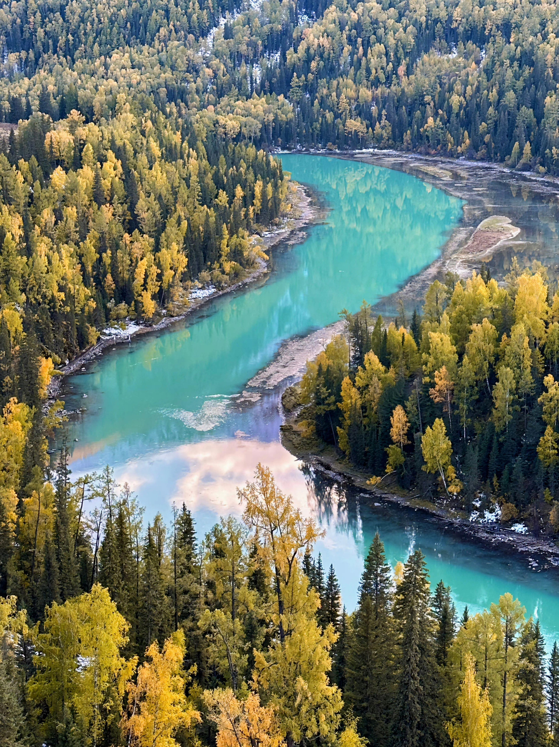喀纳斯黄绿相间的彩林,冰蓝色的河水💦更是美的惊心动魄