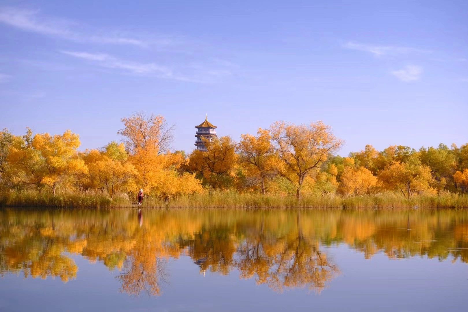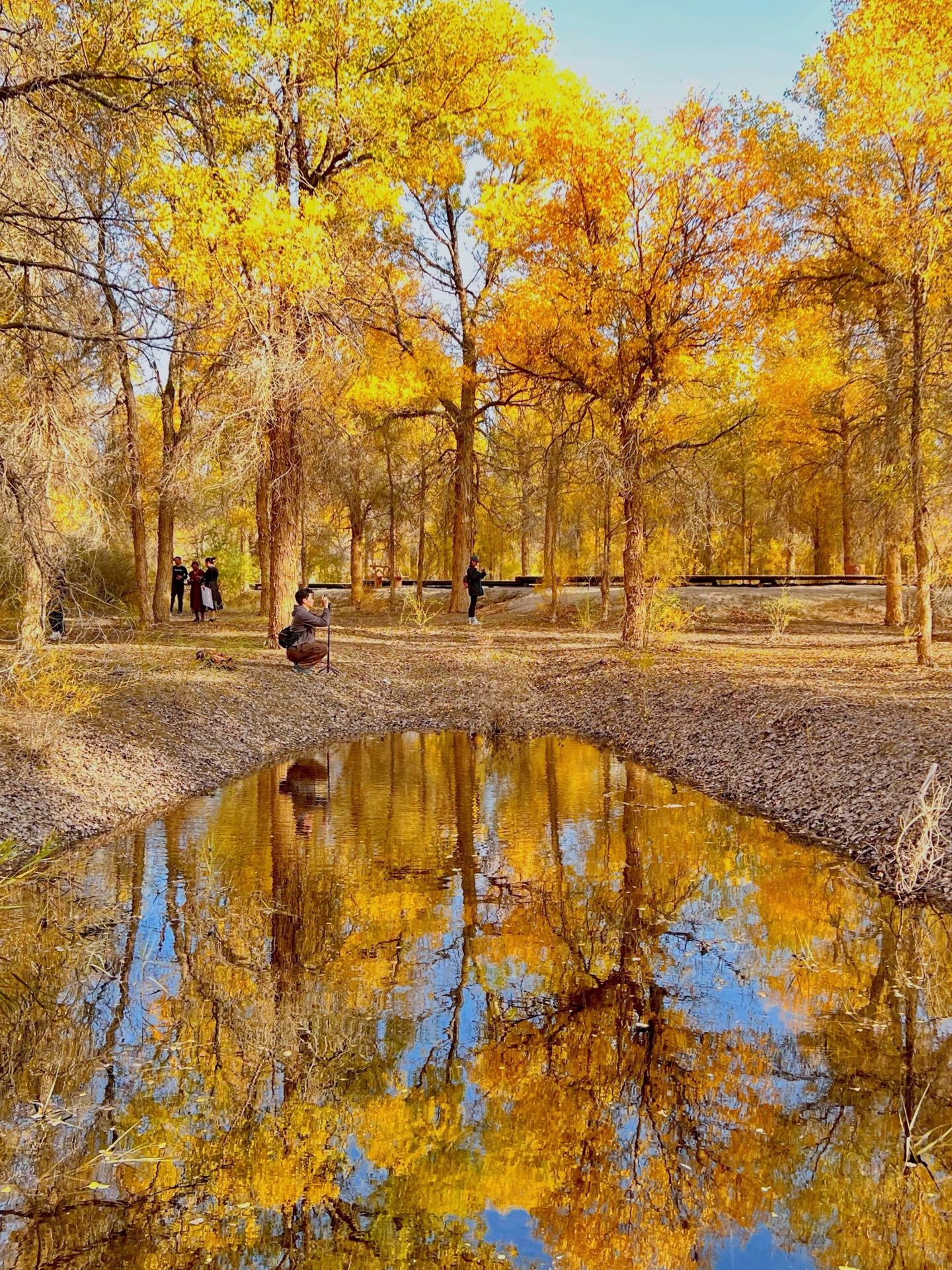 2️⃣相对比额济纳旗,个人感觉金塔胡杨林和弱水金沙湾胡杨林景色比额济纳旗更出片,胡杨有水拍倒影会更好看。(上图是前天拍的金塔胡杨林,有的略有滤镜)