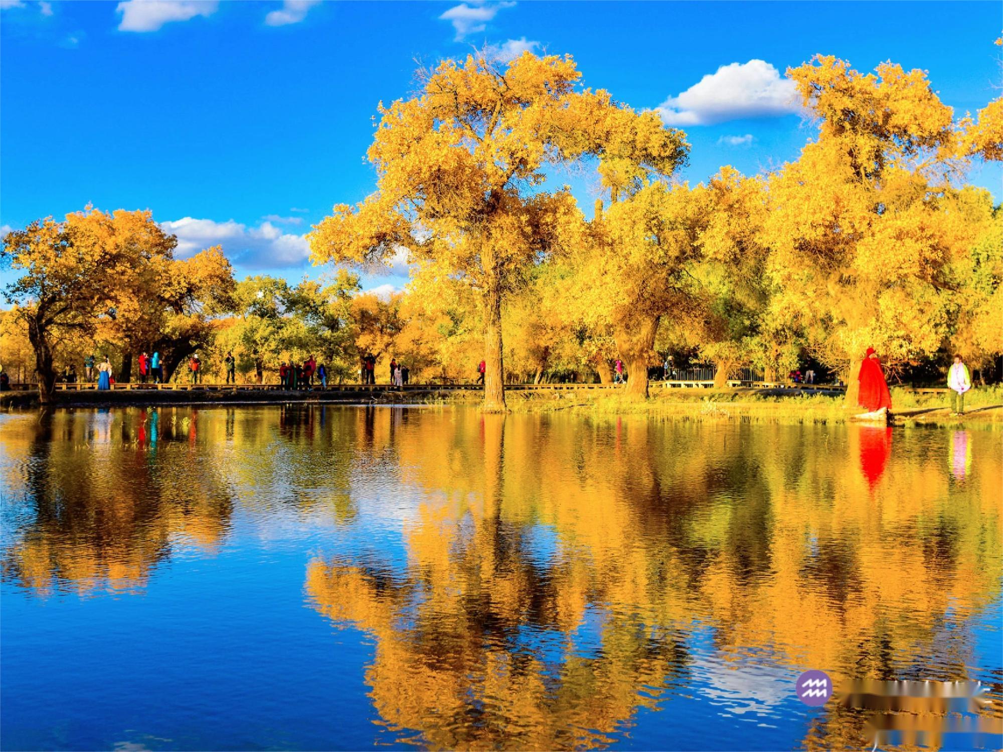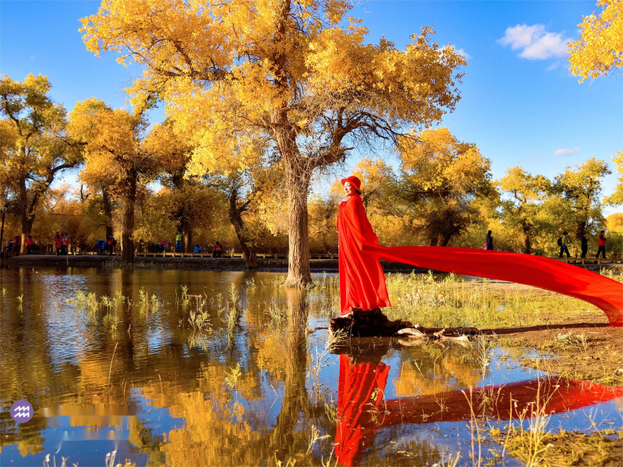 胡杨林最佳观赏期是指黄色叶片比例达到 80%以上。根据上述预测的两周最佳时段来折中,最居中的时间是10月9日前后,这个时间段节点去应该是最合适的时段。