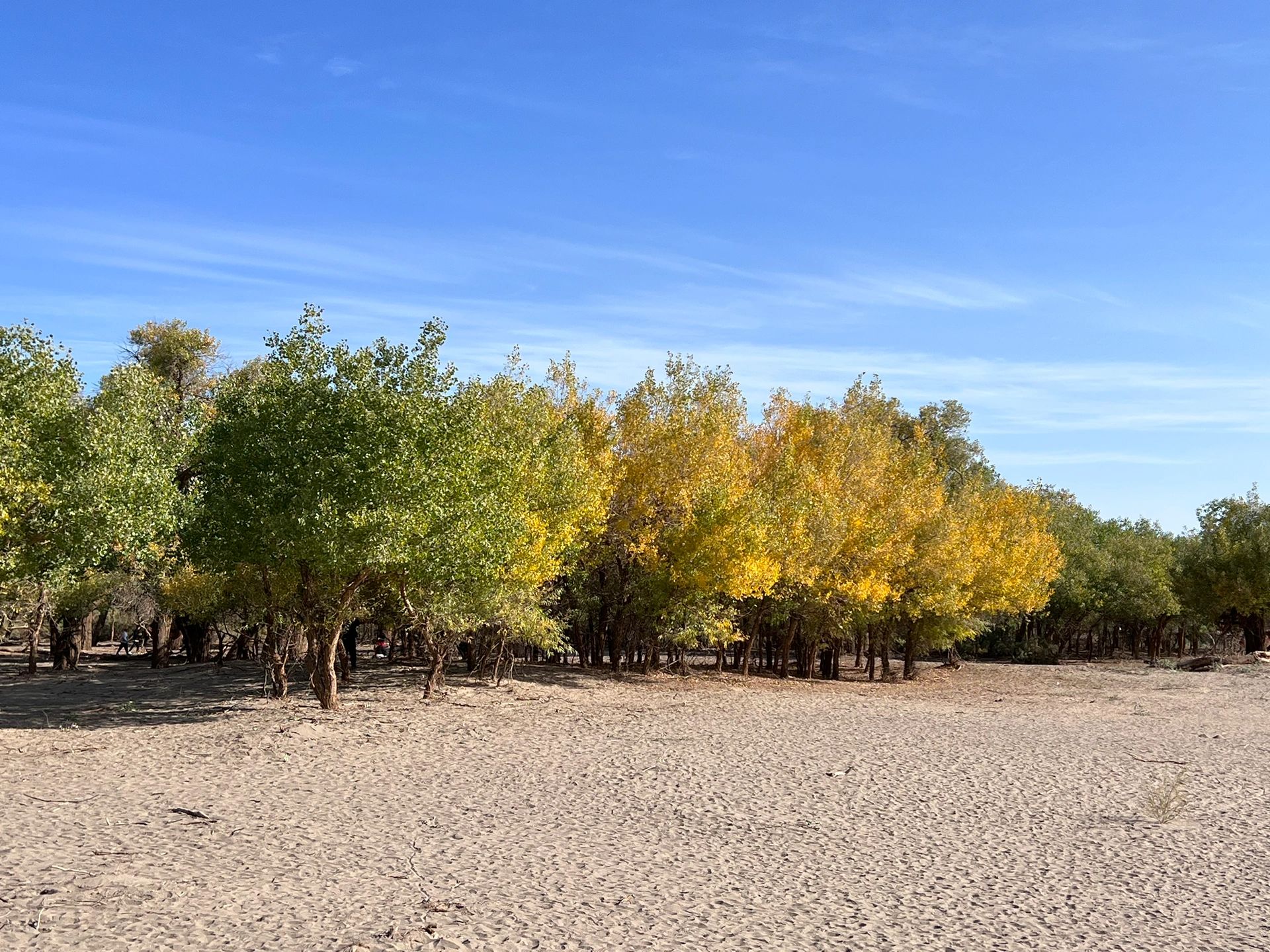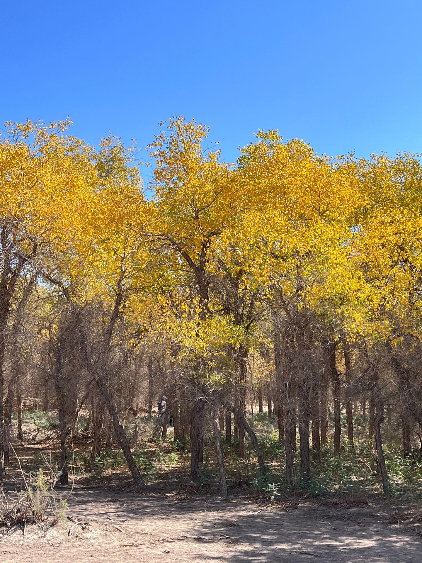 坐车到七道桥,都在西平台下车开始徒步。七道桥是最早黄的区域,现在也只是大概黄了70-80%。所以推算,想来看全黄胡杨林的,10月中旬应该比较好。