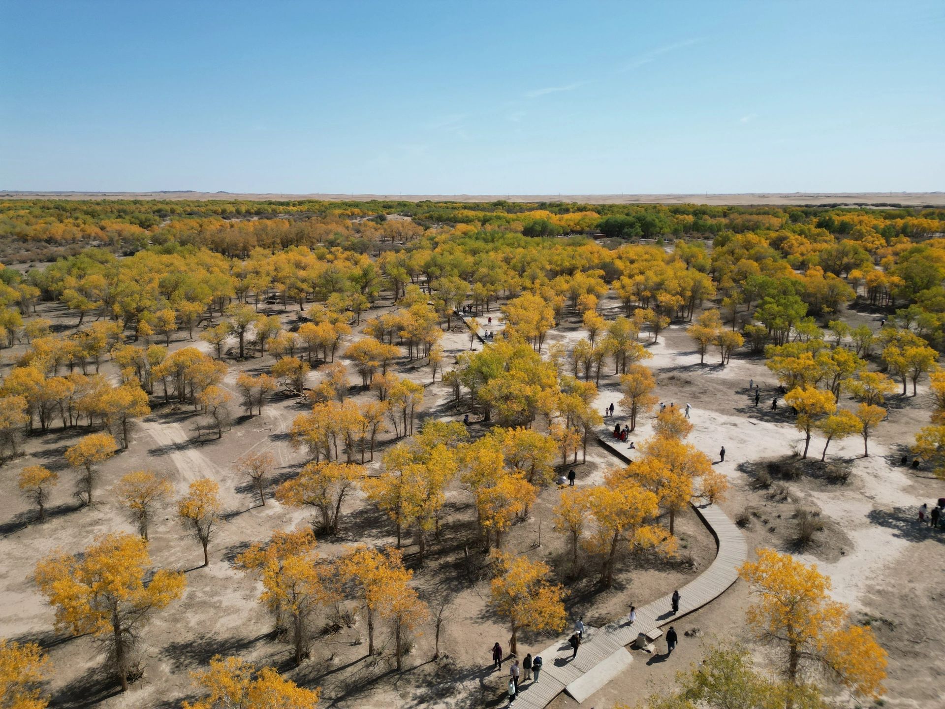 额济纳胡杨林景区非常大,一共八道桥,有的路是徒步,有的路是坐摆渡车。总体来说玩得不累。