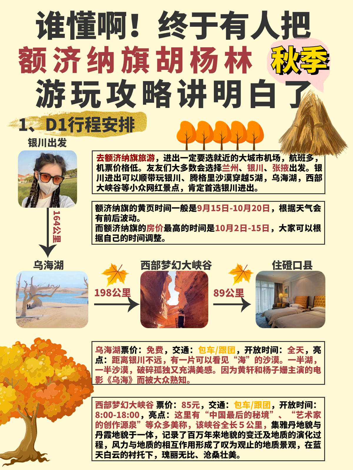 去额济纳旗旅游,进出一定要选就近的大城市机场,航班多,机票🛫价格低。友友们大多数会选择兰州、银川、呼和浩特进出。银川进出可以顺带玩银川、腾格里沙漠穿越5湖,乌海湖,西部大峡谷等小众网红景点,肯定首选银川进出。🍁