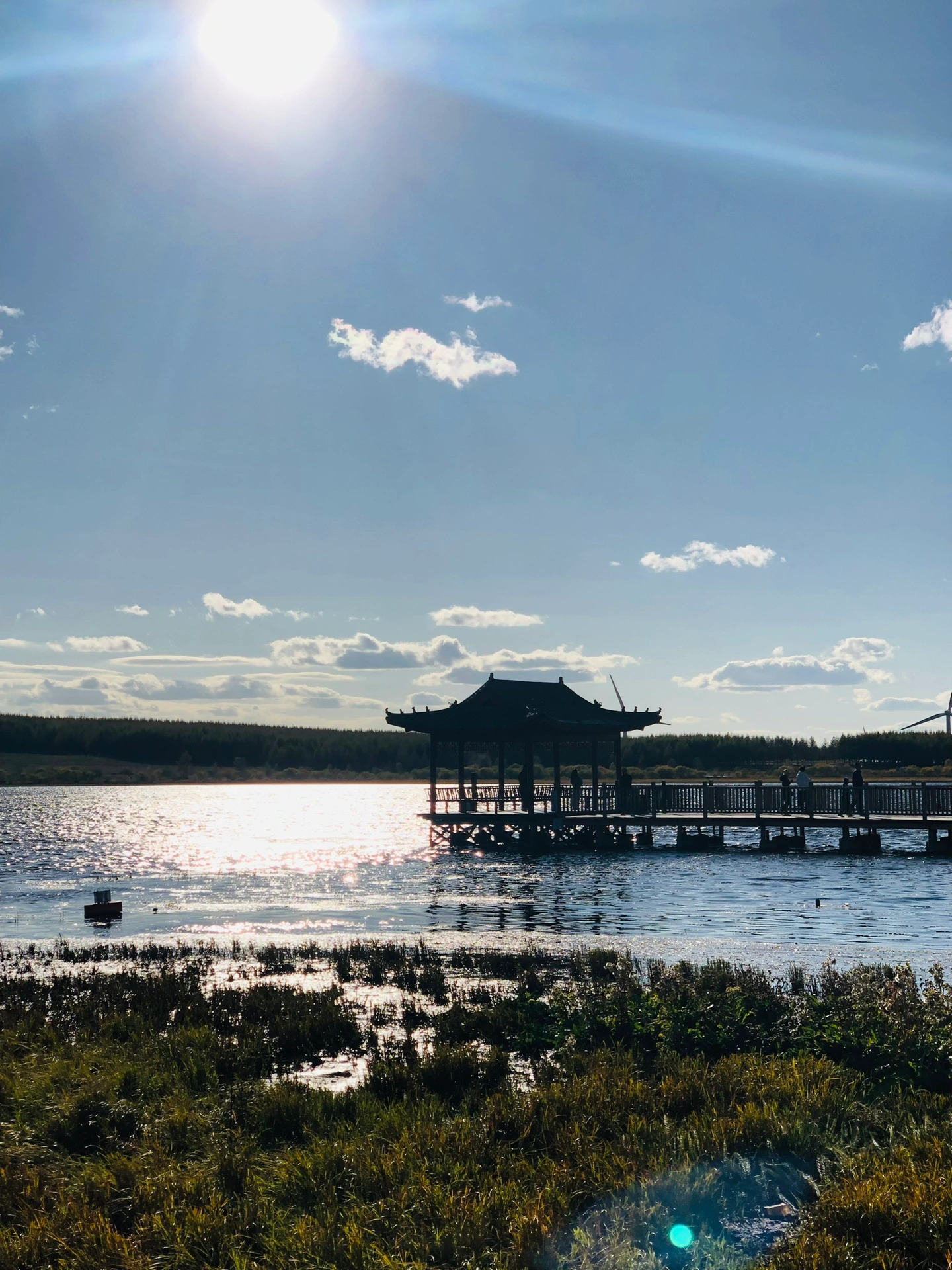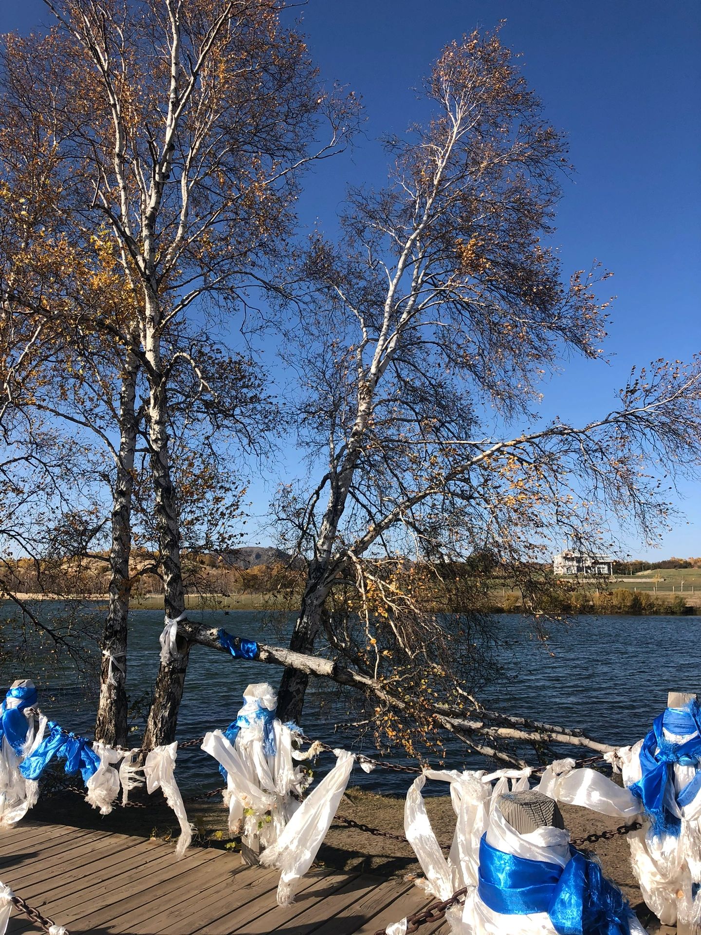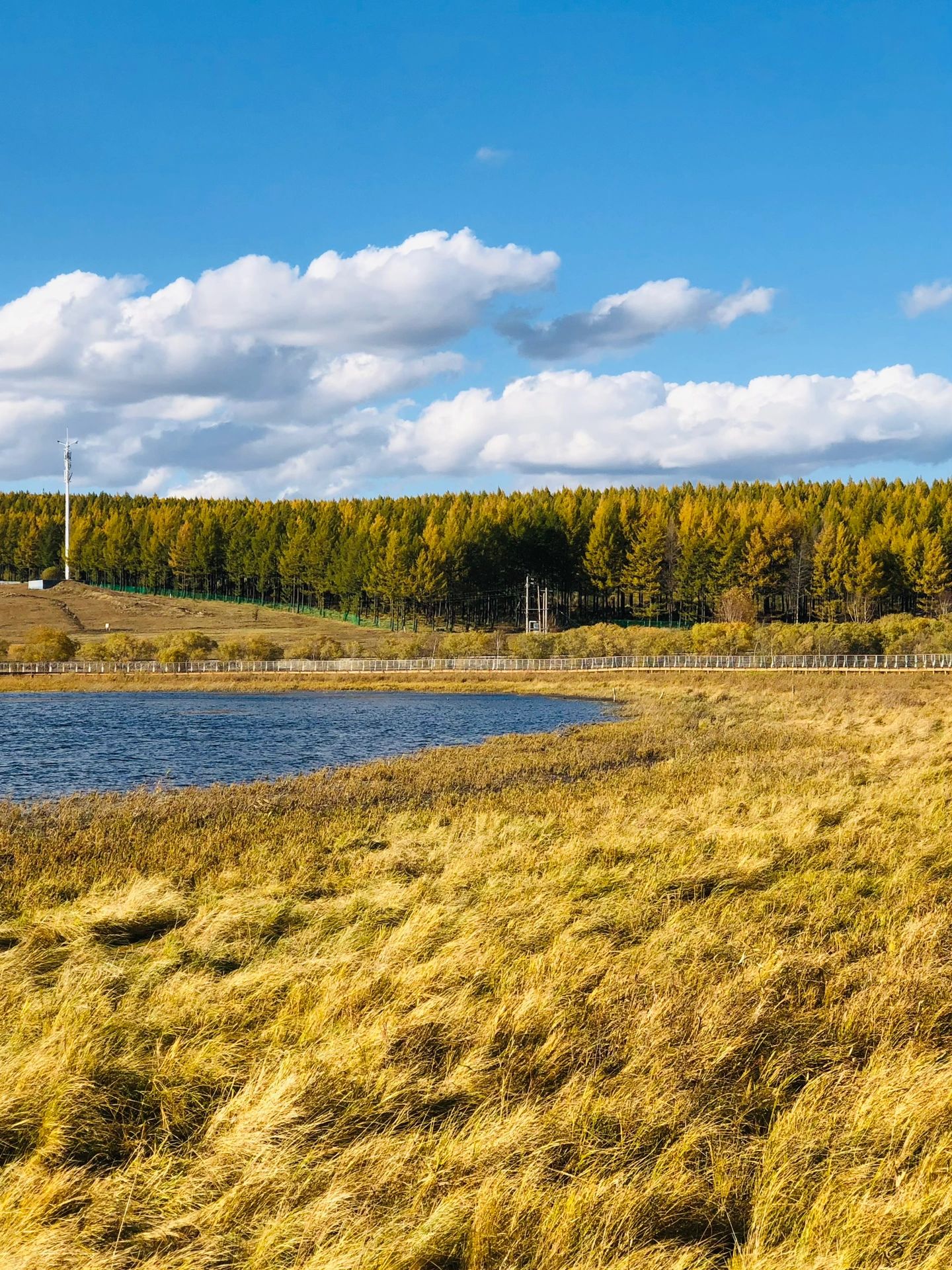 属于湿地公园,建议去散步环湖一圈。十月初,湿地公园里的白桦树和芦苇已经沾上秋色,空气中的寒肃恰到好处。风一吹,白桦树的叶子飘下来,落在被太阳照的发光的湖面上,会晃得睁不开眼。