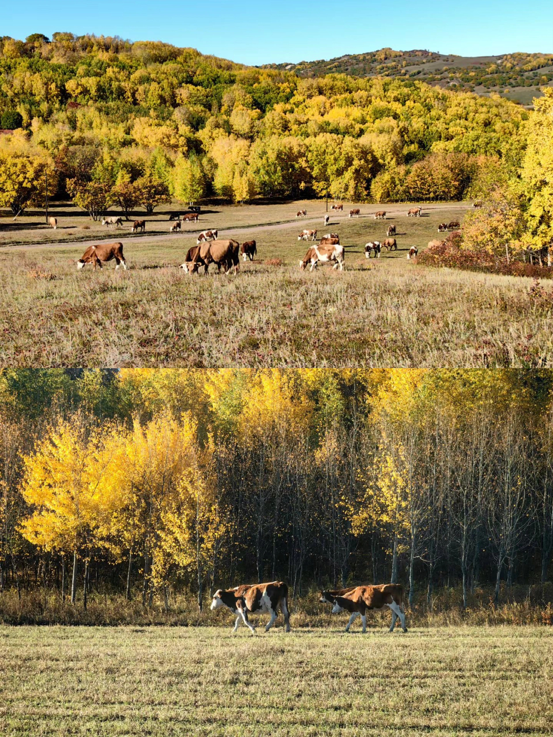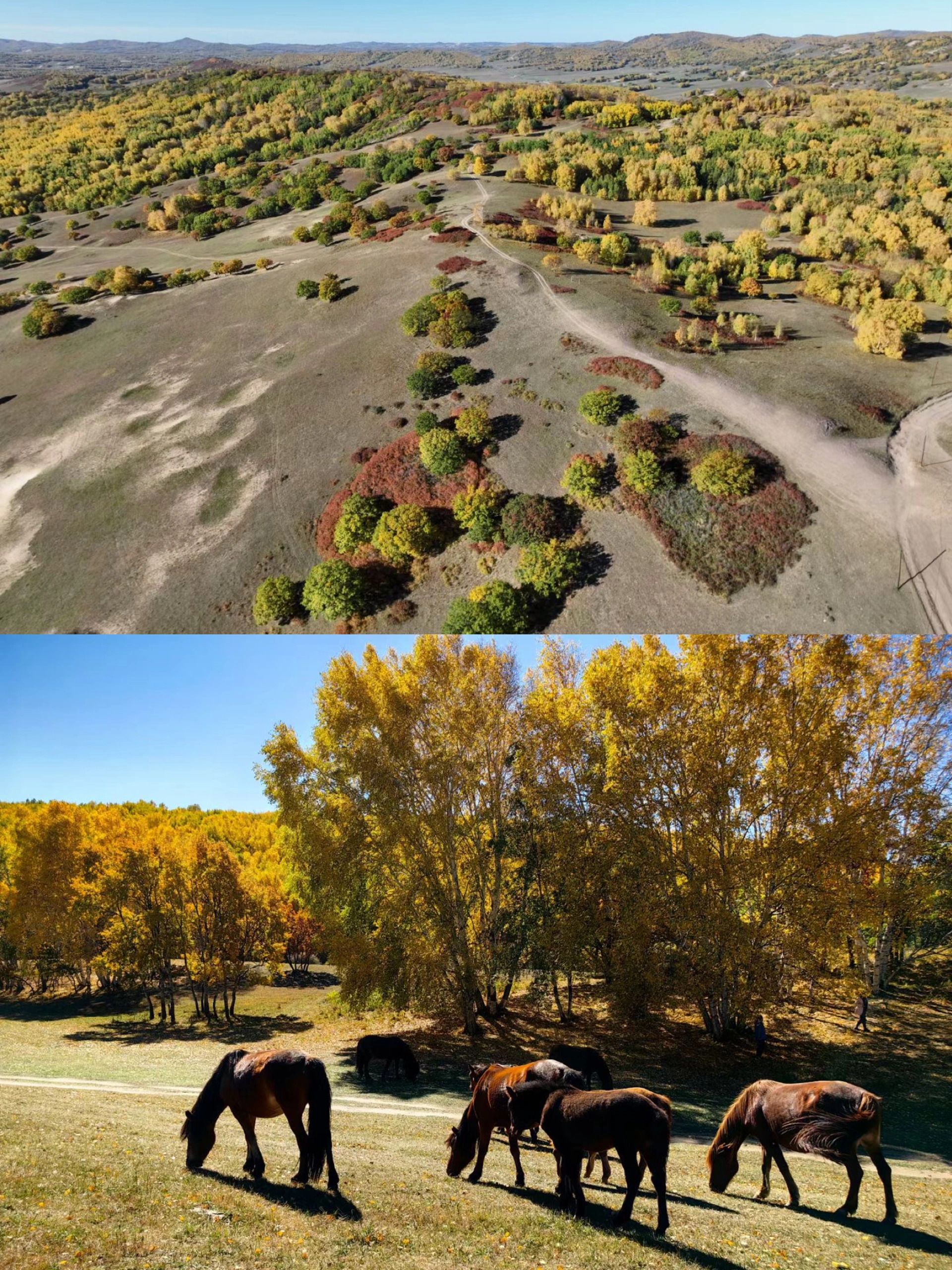 秋天,乌兰布统的草原会变得金黄一片🍂🍂大地被披上一层金色的外衣,构成一幅幅美丽的画卷。