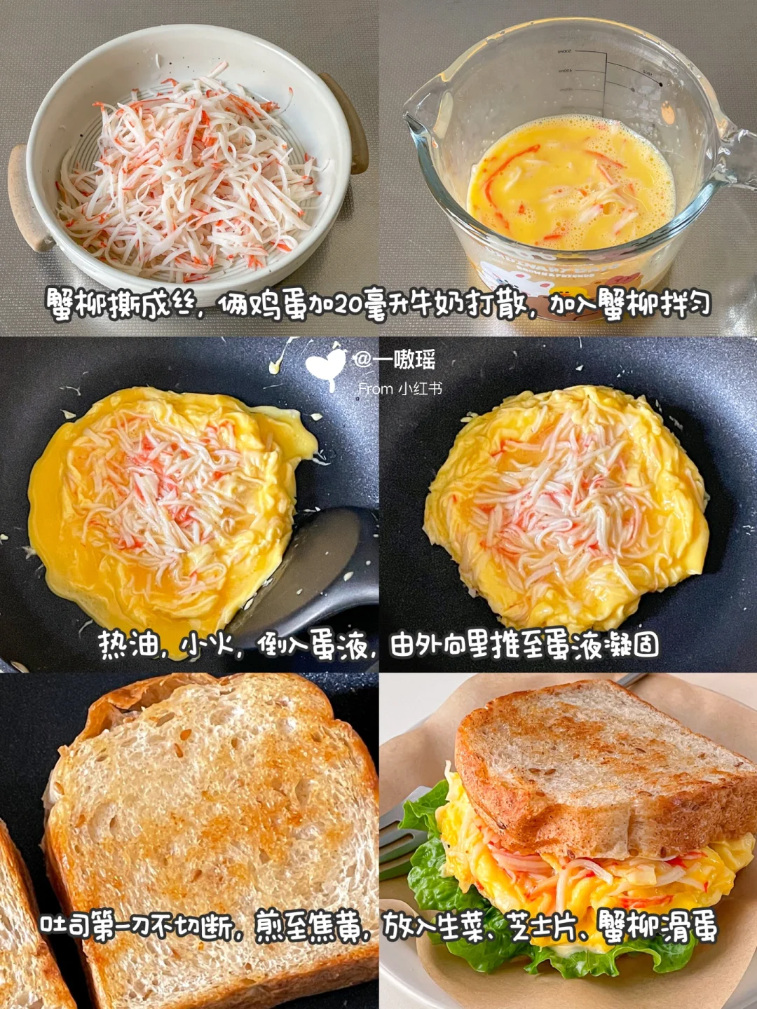 吐司 鸡蛋 蟹柳 牛奶 生菜 芝士片