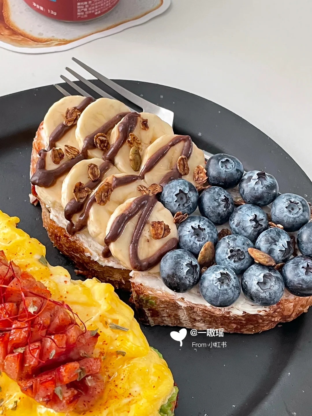 早餐就要简单!快手!营养全! 甜咸双拼开放式三明治请收下🥖 - 今日搭配公式 • :* 🌭🫐🍌🍳 🥑•:*・ ❶欧包+牛油果+滑蛋+烤肠 ❷欧包+抹奶酪+香蕉+蓝莓 👩🏻🍳做法 ▫️牛油果压成泥 ▫️烤肠切花刀煎熟或烤熟 ▫️两个鸡蛋打散(加20g牛奶口感更嫩)做滑蛋 ▫️食材如图依次堆叠起来 ▫️另一片欧包抹一层奶酪 ▫️放香蕉片和蓝莓,香蕉上淋巧克力酱 - 🍳做滑蛋用可生食鸡蛋嗷 🥖三明治用了菜叽的芝芝辣椒乡村欧包,拆开快递盒,扑鼻而来的浓郁香味,绝 🍽️ from 禾下 • 手作大餐盘
