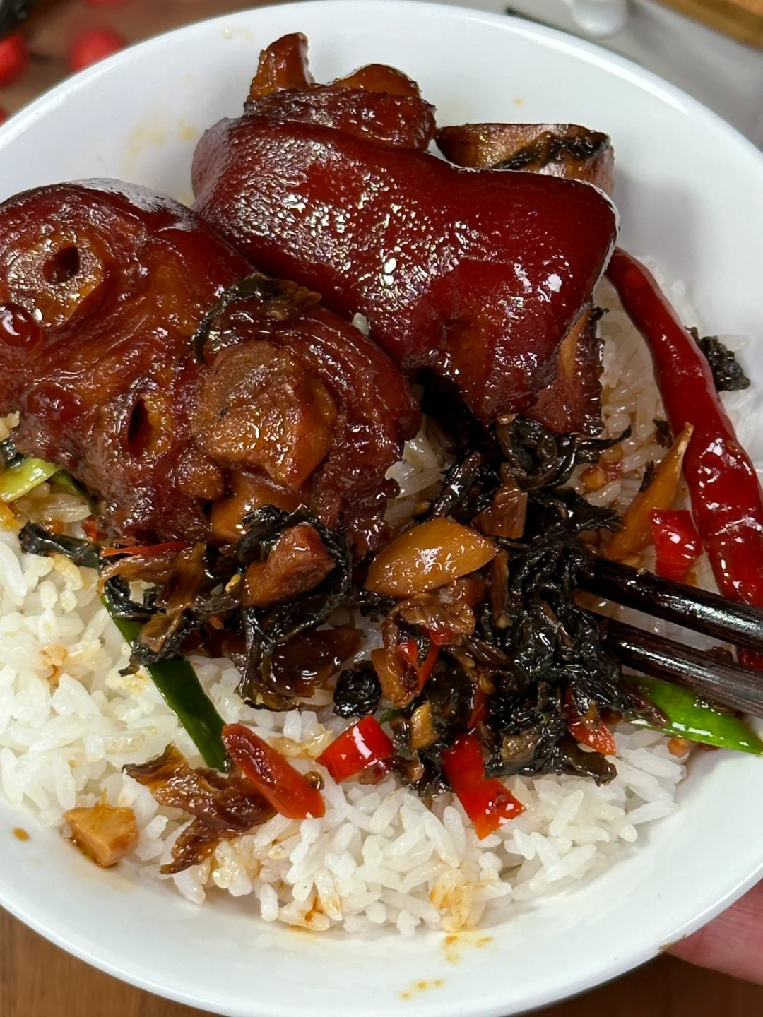今天做的梅干菜烧猪蹄特别好吃,真的巨香非常的软糯,得到了家人的一致好评~[派对R]