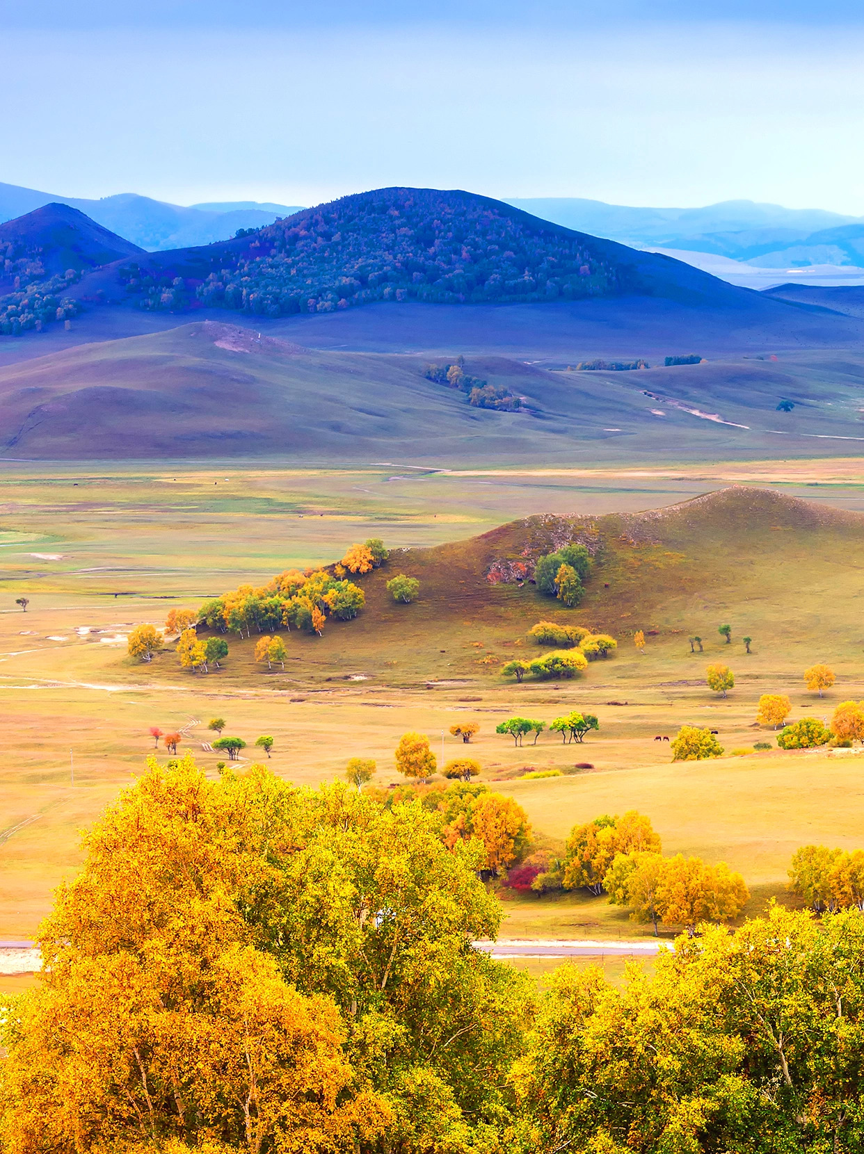 📍位于内蒙 古自治区的乌兰布统,是木兰围场的一部分,这里红叶璀璨,草原广袤,马牛 羊成群,百余座蒙古包点缀其中,是一个天 然的氧吧