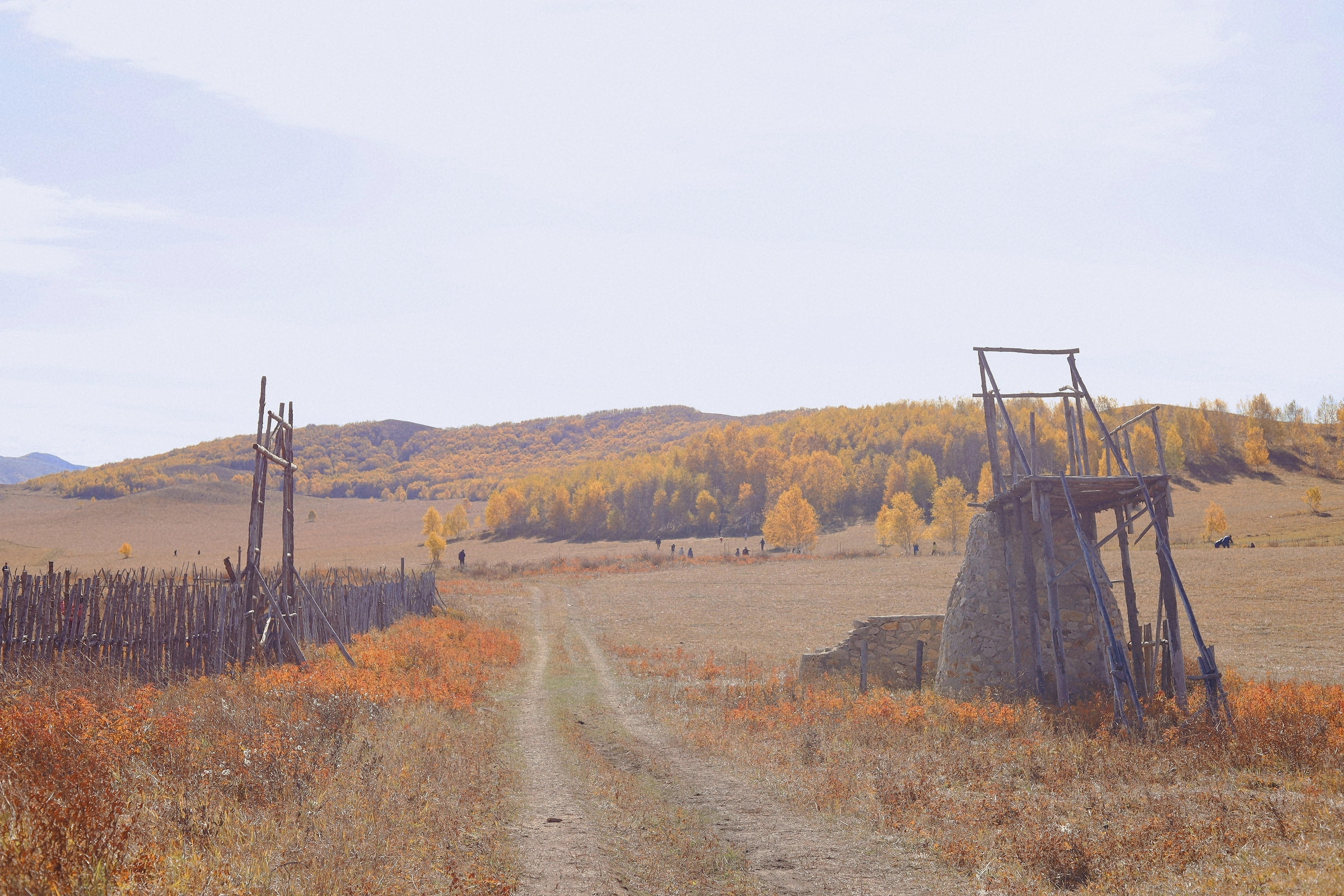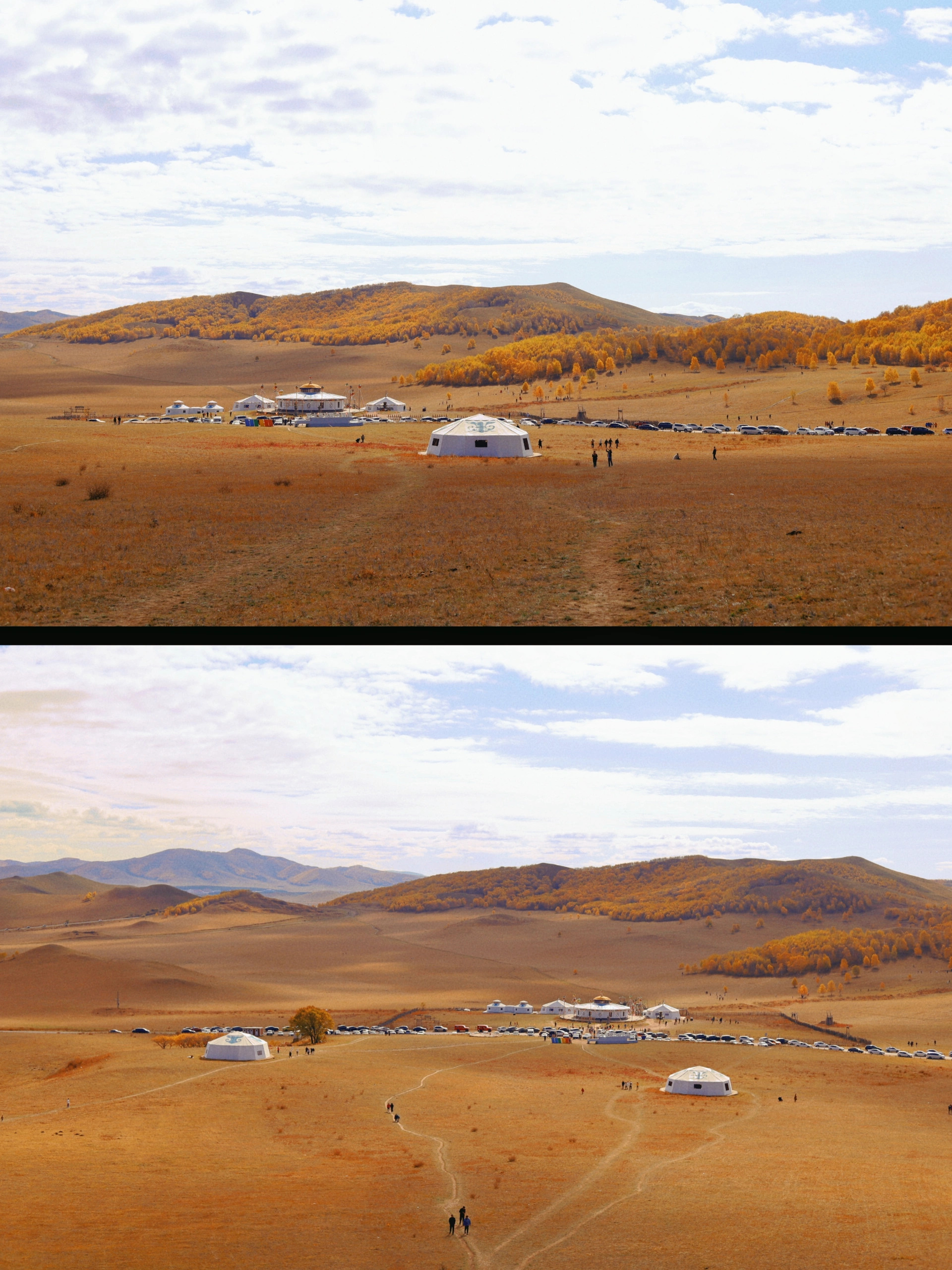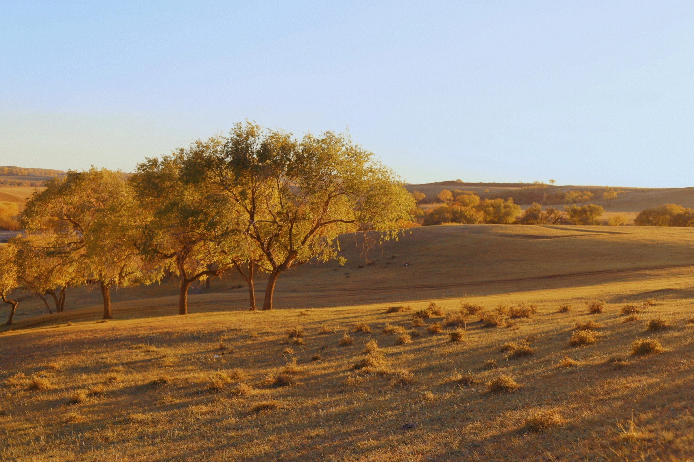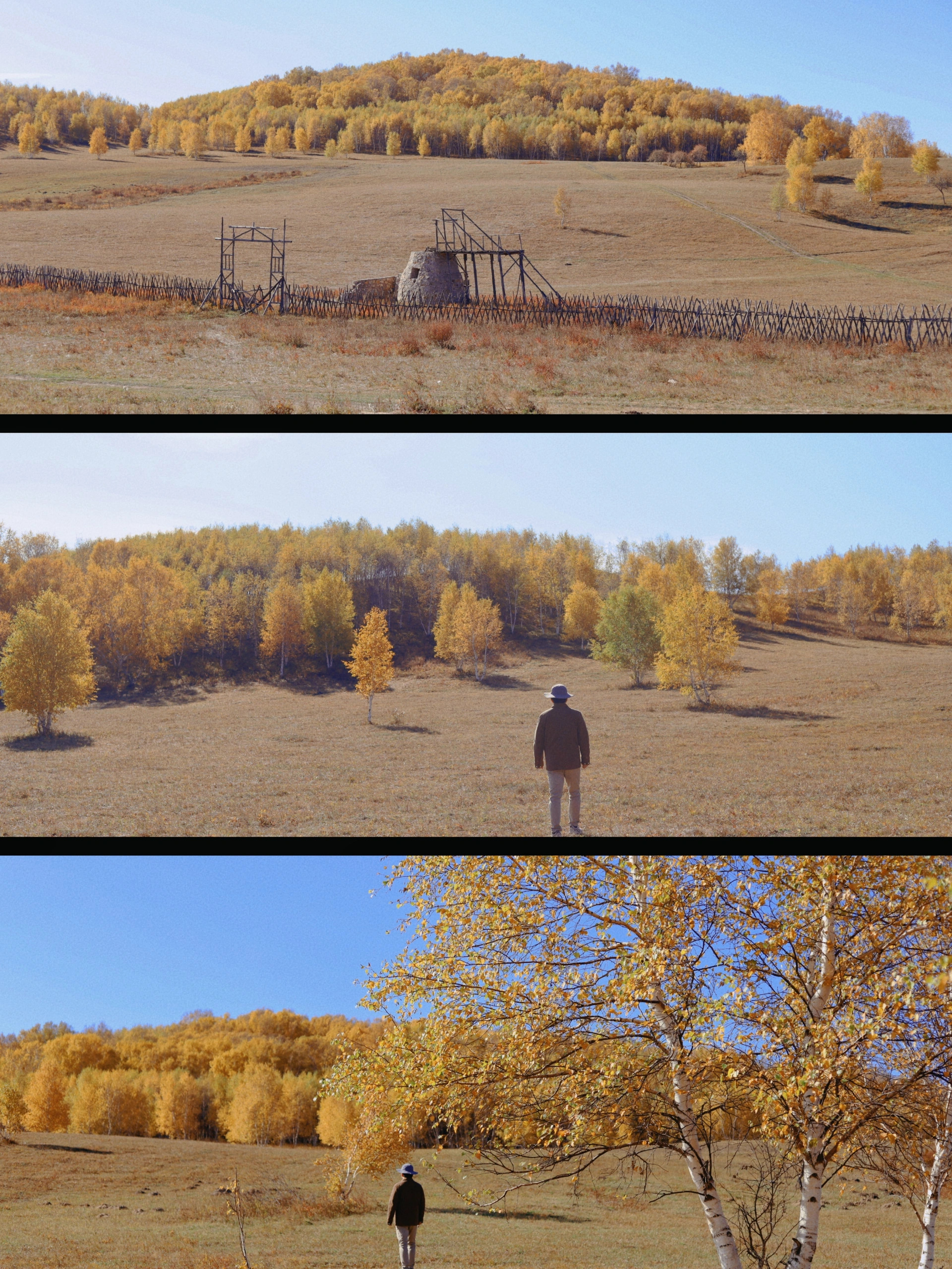 影视基地:桦树林、错落的山坡和蒙古包,叠加上早晚太阳斜照的逆光,自然形成一种朦胧美,堪比油画。