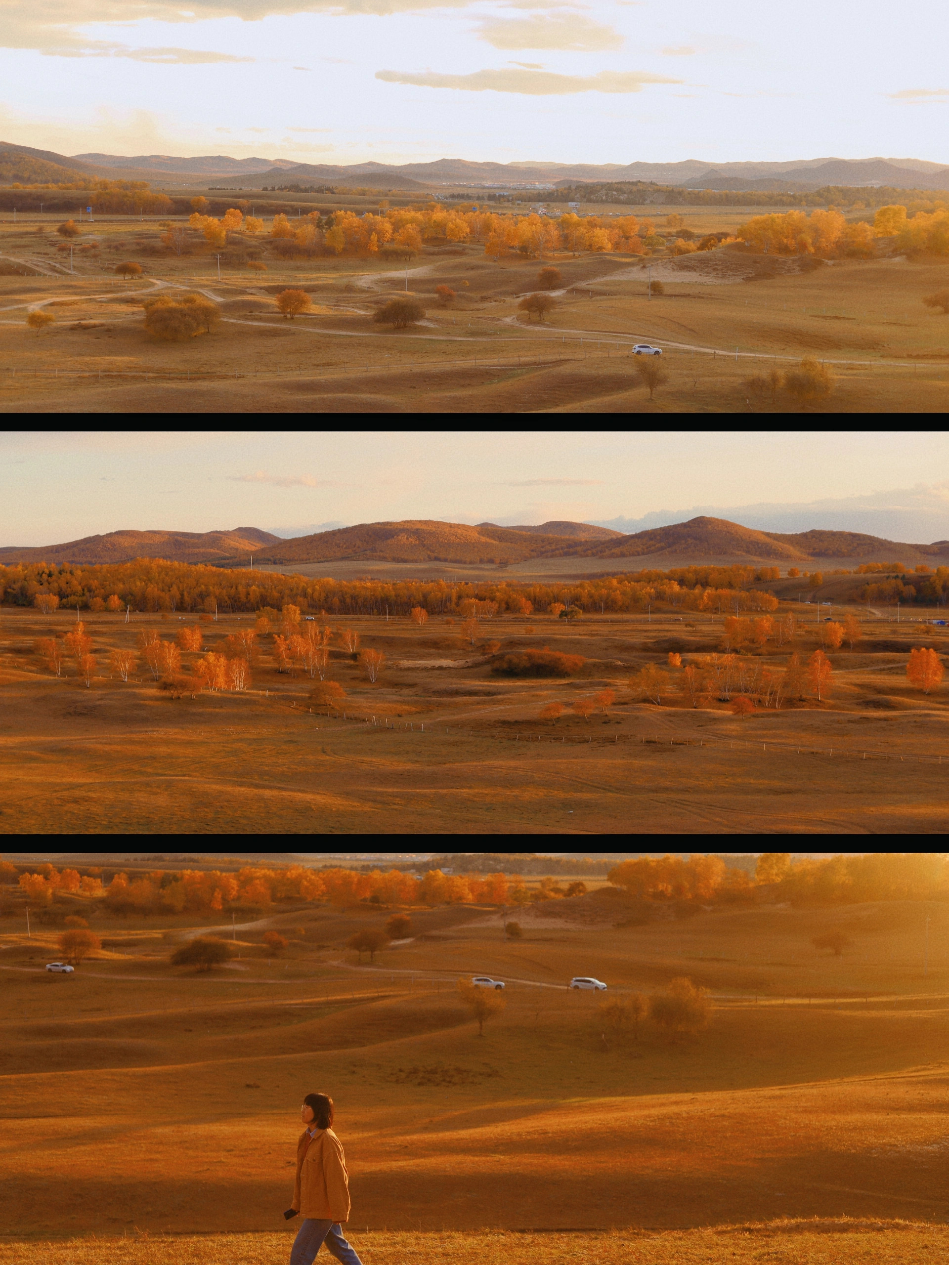 第一天走棋塞线赶到乌兰布统,去白家窝铺看日落;第二天走景区环线,上午南线下午北线,在透风沟看日落;第三天原定计划上午去桦木沟和蛤蟆坝,下午回程,后来因电车充电问题提前返程,走国家一号风景大道,临时加入承德站。