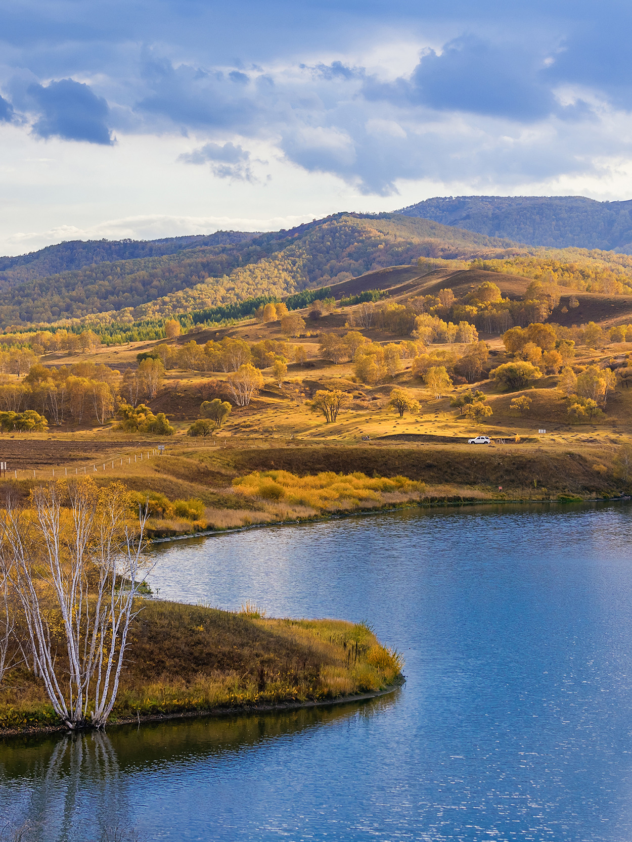 不论是色彩,树木,还是那一汪碧水,就连地势起伏的线条都是舒缓流畅且优雅