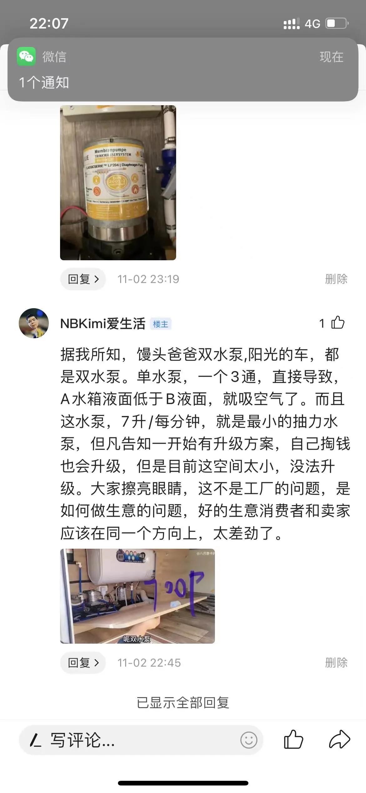 应巍豪车友要求,帮巍豪车友转发维权声明(以下是该巍豪车友提供的文字内容及图片): 该车友于2021年5月18日提车,巍豪房车旅行家一号新车: 1、被房车水流小折磨够呛,后来发现是某豪为了省钱,对双水箱只采取一个功率最小的水泵供水导致(7升/分钟的出水量)。本该是双水泵设计,居然偷工减料成一个最低功率的小水泵。然后代工工厂说先天设计就未留够空间,导致后期已经无法再加装水泵。(北极熊和馒头爸爸的700p都是双水泵设计)(图2-图5) 2、卫生间没有保温隔热,太阳照着居然透光。保温层究竟在哪里?箱体三明治至少有隔热,卫生间成了冰窖?(额头床侧窗附近也有一块儿透光,如何做的代客户验收工作?) 对提出的问题,从来没有回访,感觉就是“不想解决,老子就是牛*!”(见图1透光) 注:本文章最终解释权和版权归“NBKimi爱生活”所有。