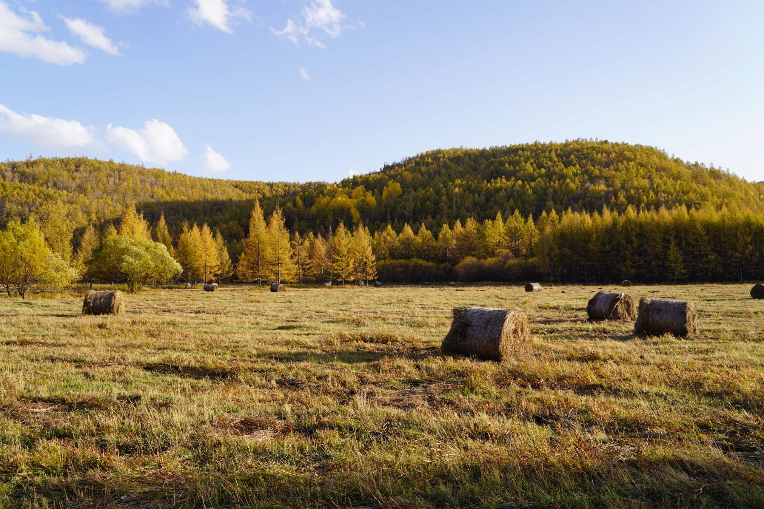 黄叶有个特点就是不同的光线呈现不同的黄色,现在阿尔山还是有绿,主要是树种的不同,有些开始落叶,有些还绿的。