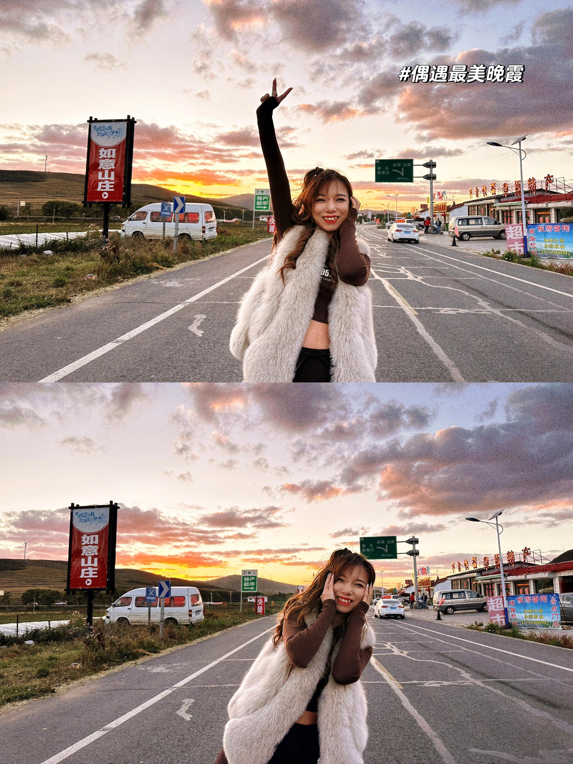 ‼️推荐一个拍日落特别美得地方‼️‼️百度搜“如意山庄”,门前的大马路很出片,还有如意山庄旁边有一个白色墙的土坡,爬上山拍也超级美‼️‼️旅行中发现的小美好,和你一起分享哈