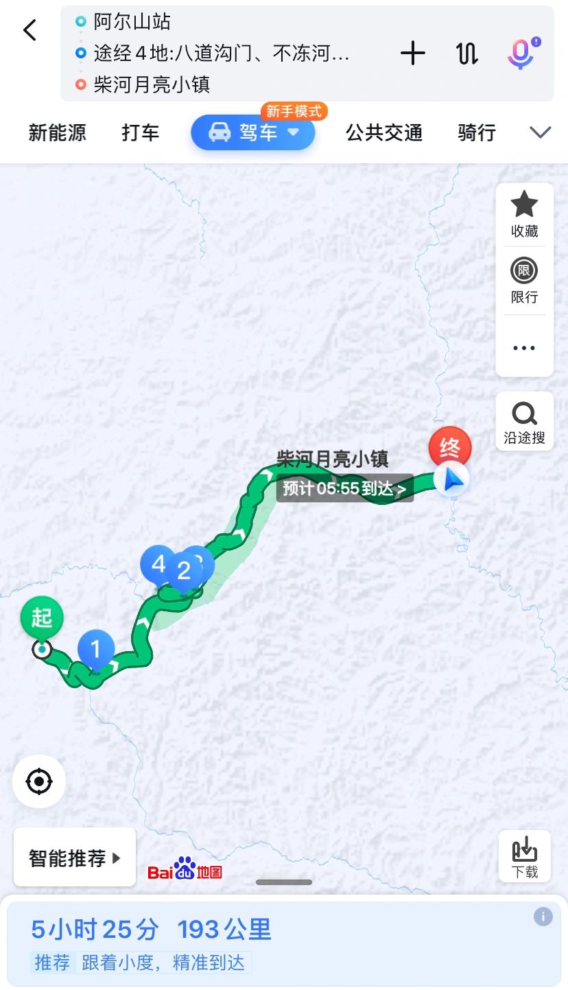 🟠Day 1 阿尔山站——(经八道沟)——不冻河观景台——哈拉哈河源头——乌苏浪子湖——(上蘑阿公路)——柴河月亮小镇「住宿🏠」