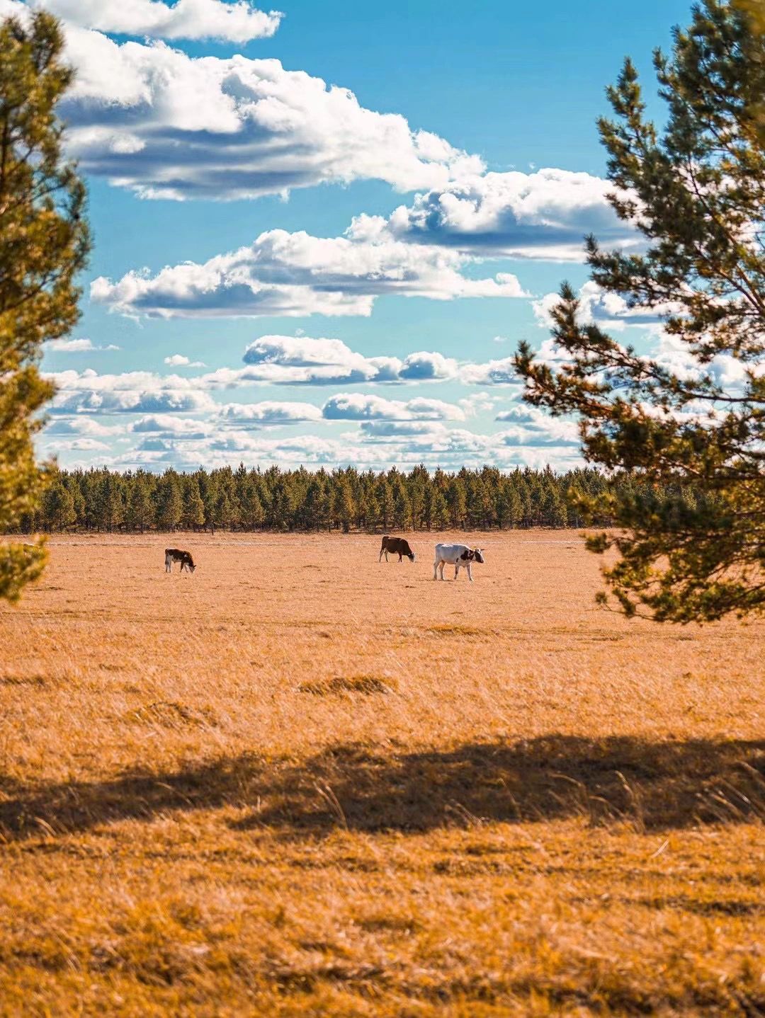 在内蒙的几天每天映入眼帘的都是蓝天白天☁金灿灿的树叶🍂成群的牛羊🐮高高的草垛🪵真的到处都充满了秋天的气息 是非常治愈的几天了🧡