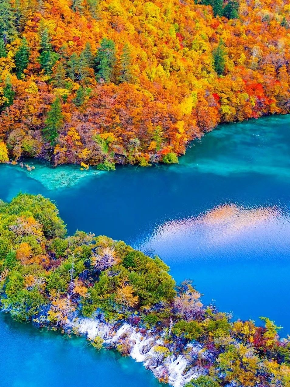 🍂秋季是九寨沟蕞美的季节,而秋季中又以每年10月中下旬为蕞佳时期,这时的大部分树叶已经完全变色,有的是金灿灿的黄,有的是漫山遍野的红,再加上景区内其它的颜色作为过渡和点缀,九寨沟如同造物主打翻的调色盘,俨然一幅天然的油画。