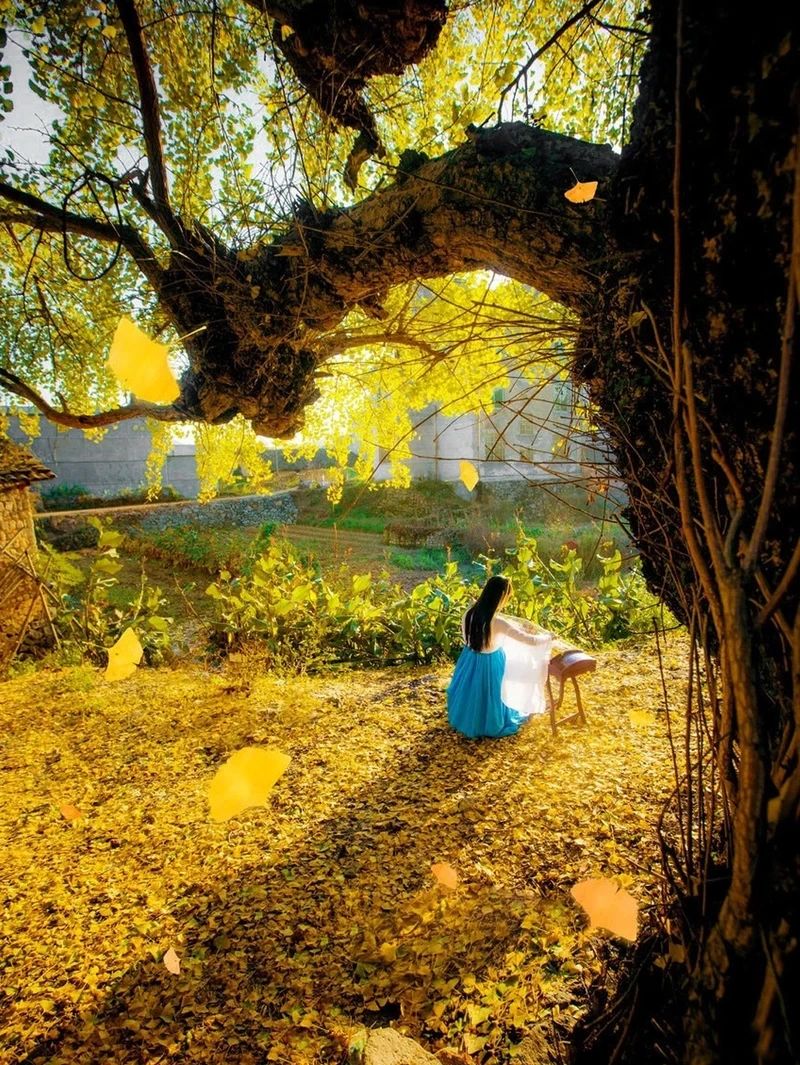 地点建议农家院,银杏树高大🍂,人少落叶多