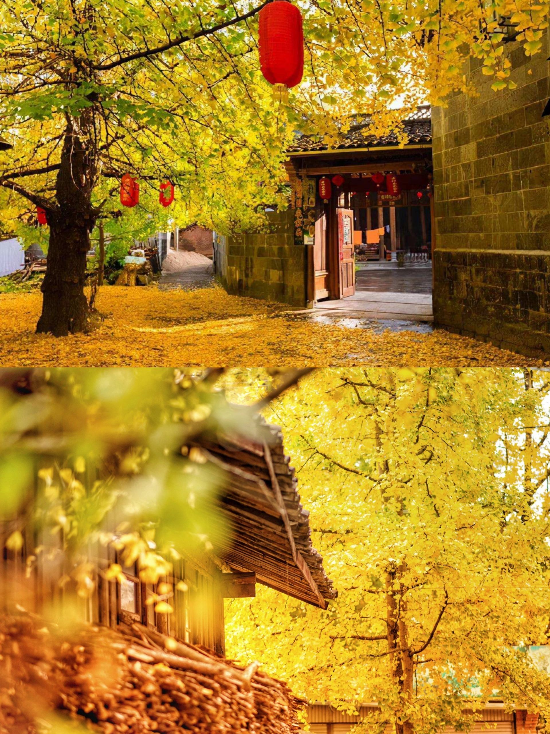 来这里走一走,看满树金黄,听脚下鎏金沙沙精响,村庄里炊烟袅袅,几乎家家户户的院子都有银杏树
