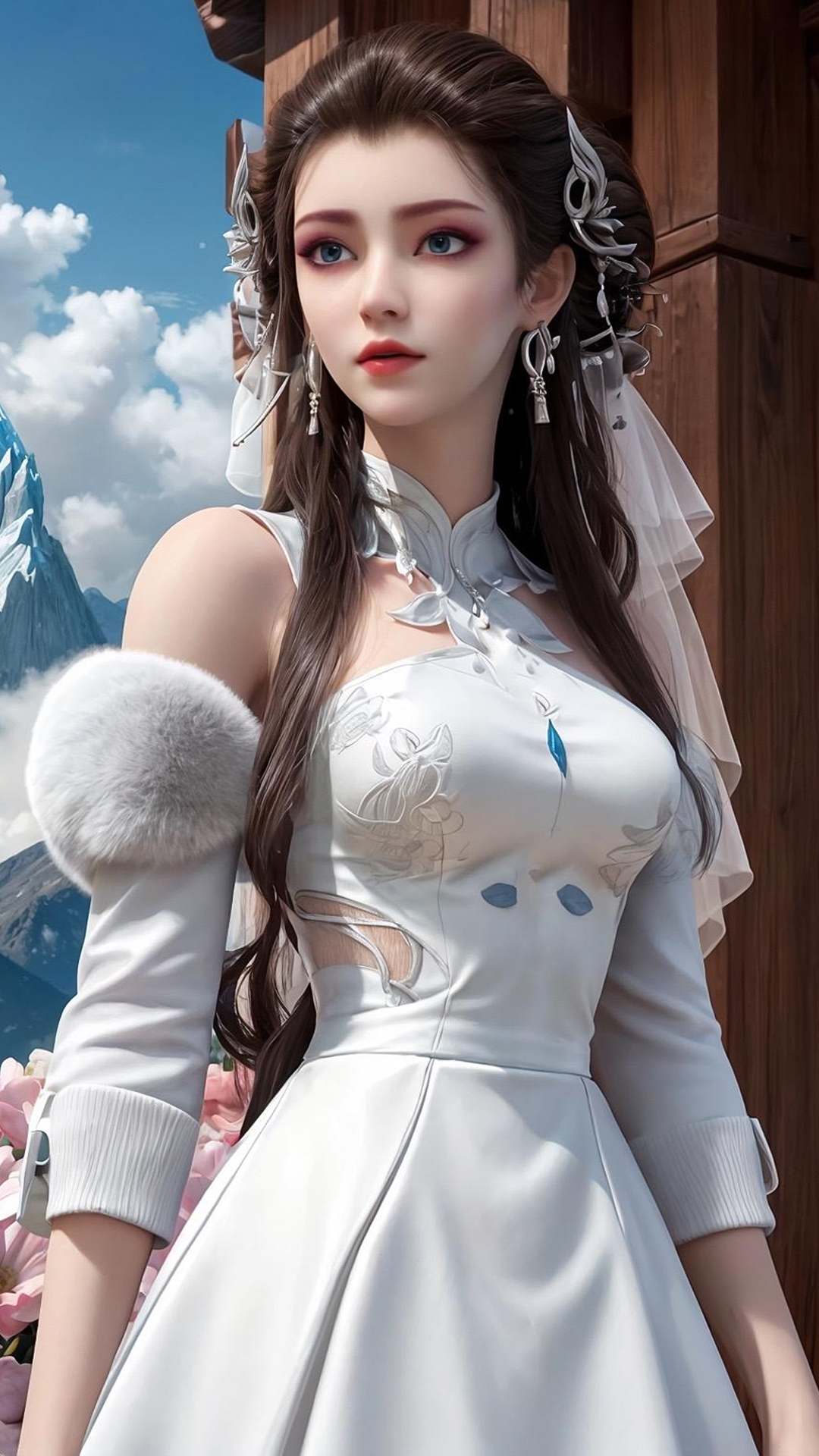 国漫女神|《梦塔雪谜城》白亦君AI高清手机壁纸:白衣美如雪,一步一生莲!