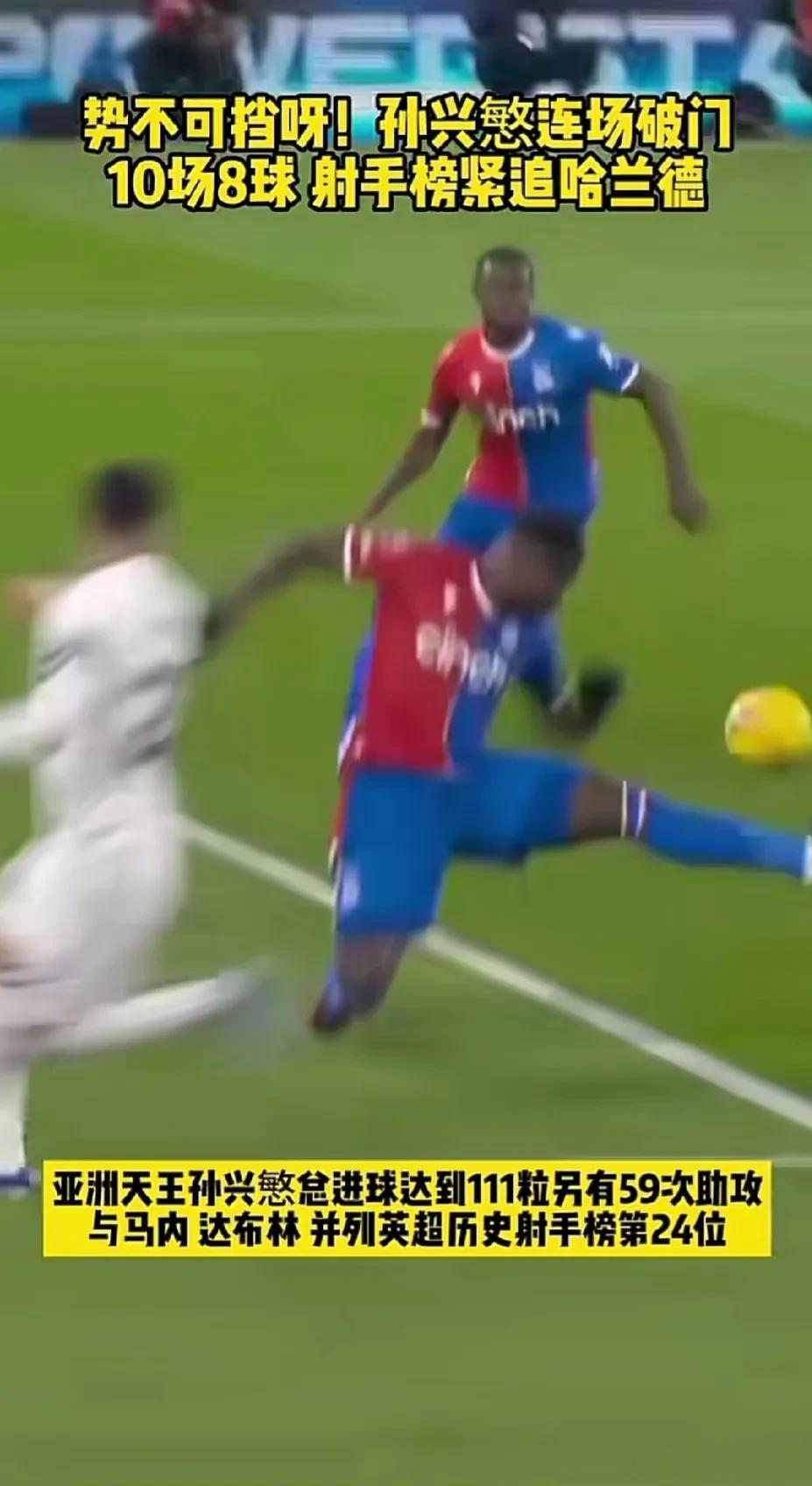英超一幕:热刺2-1击败水晶宫比赛中状态良好的孙兴慜又进球了,整个进球过程所有的队员配合可谓行云流水非常流畅,可以看出每个人的基本功都无比的扎实,每个人思路都很清晰不拖泥带水,以最简单最有效的方式直接推到前场形成攻击,无论从穿射配合还是门前抢点意识及人员层次站位都可以看出他们在日常训练中肯定多次演练过这样的打法,才能如此娴熟的去完成这一波完美的配合 热刺队长孙兴慜赛后接受《天空体育》记者采访时被记者问道自己是不是要和在德甲的凯恩比进球数时他谦虚的回答记者:凯恩比自己要高一个层次,自己没有这方面想法就是想把后面每一场比赛打好 目前孙兴慜以8个进球紧随哈兰德之后大有稳定射手榜第一的态势