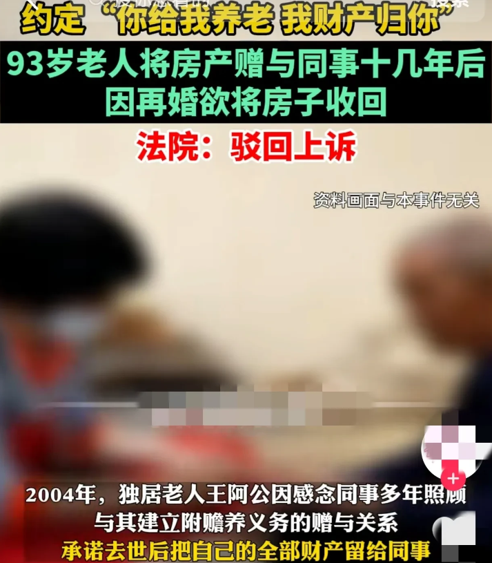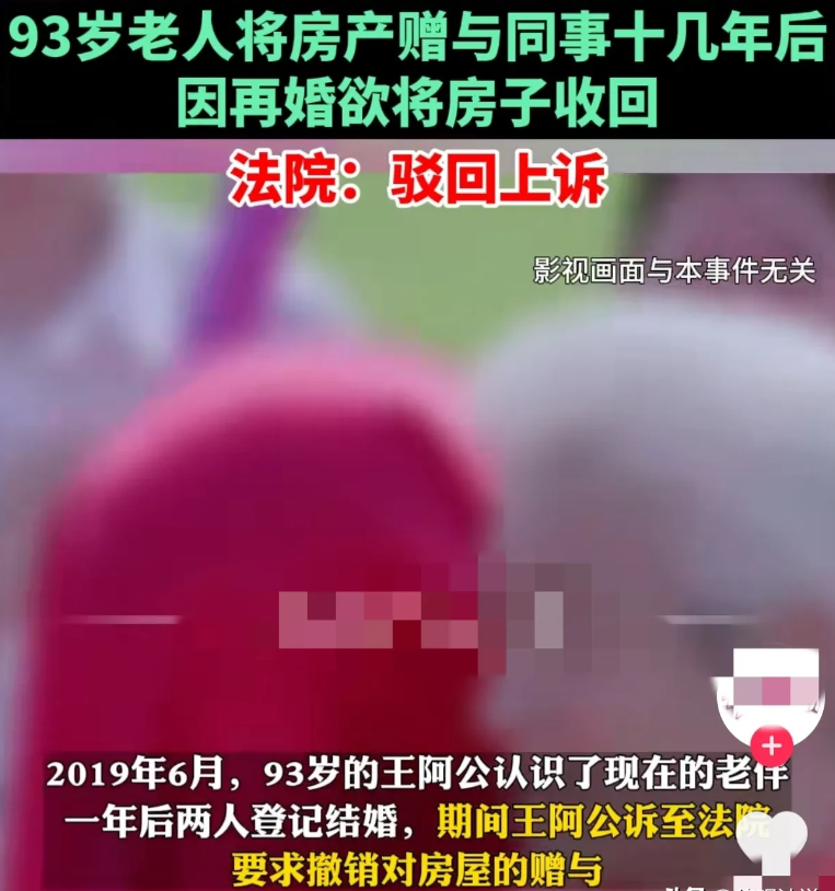 时间推测没有问题[赞]补充一下:2004年,同事照顾他15年,他把房子赠予同事。同事继续照顾他到现在(60岁—93岁,共33年)。2019年6月,老人90岁的时候结婚了,他要求同事返还房子。未果,于是起诉同事。他把这30年吃下去的全吐出来再来提这事吧