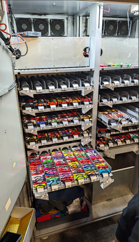 这是上海虹桥机场的一次性打火机免费自动发放机,看完这个内部结构,我多多少少产生了一点小小的担忧,那就是这玩意所发放的打火机并不是按统一标准生产的,而是机场安检随机回收来的一次性打火机,这也就意味着打火机的质量参差不齐,如果个别打火机在这台机器内部发生泄露,那么就会在机器内部形成可燃气体与空气的结合,如果碰到明火,比如机器内部电机或继电器产生的火花,或是刚刚取到打火机的人立刻点烟(吸烟区就在边上),那此时这台一次性打火机发放机,可能也许大概就变成了一颗“💣”,虽然我也看到了排风扇和那个白色的类似可燃气体传感器的东西,但将这么多质量不统一不确定的一次性打火机放在一起,多多少少感觉还是有点悬乎