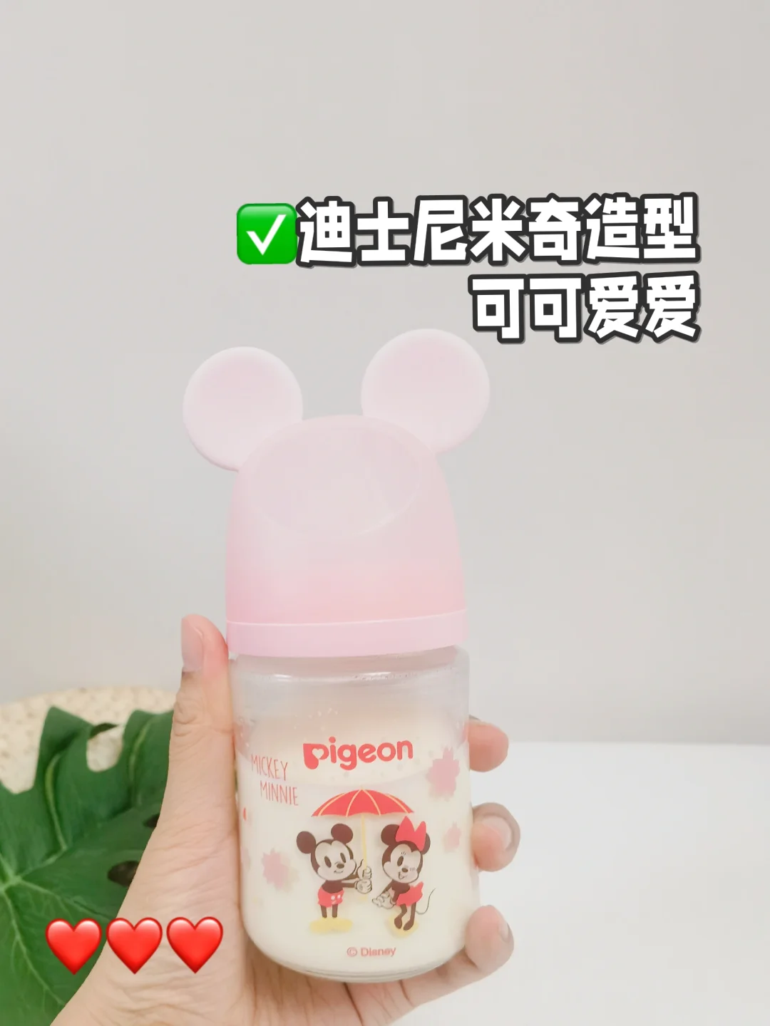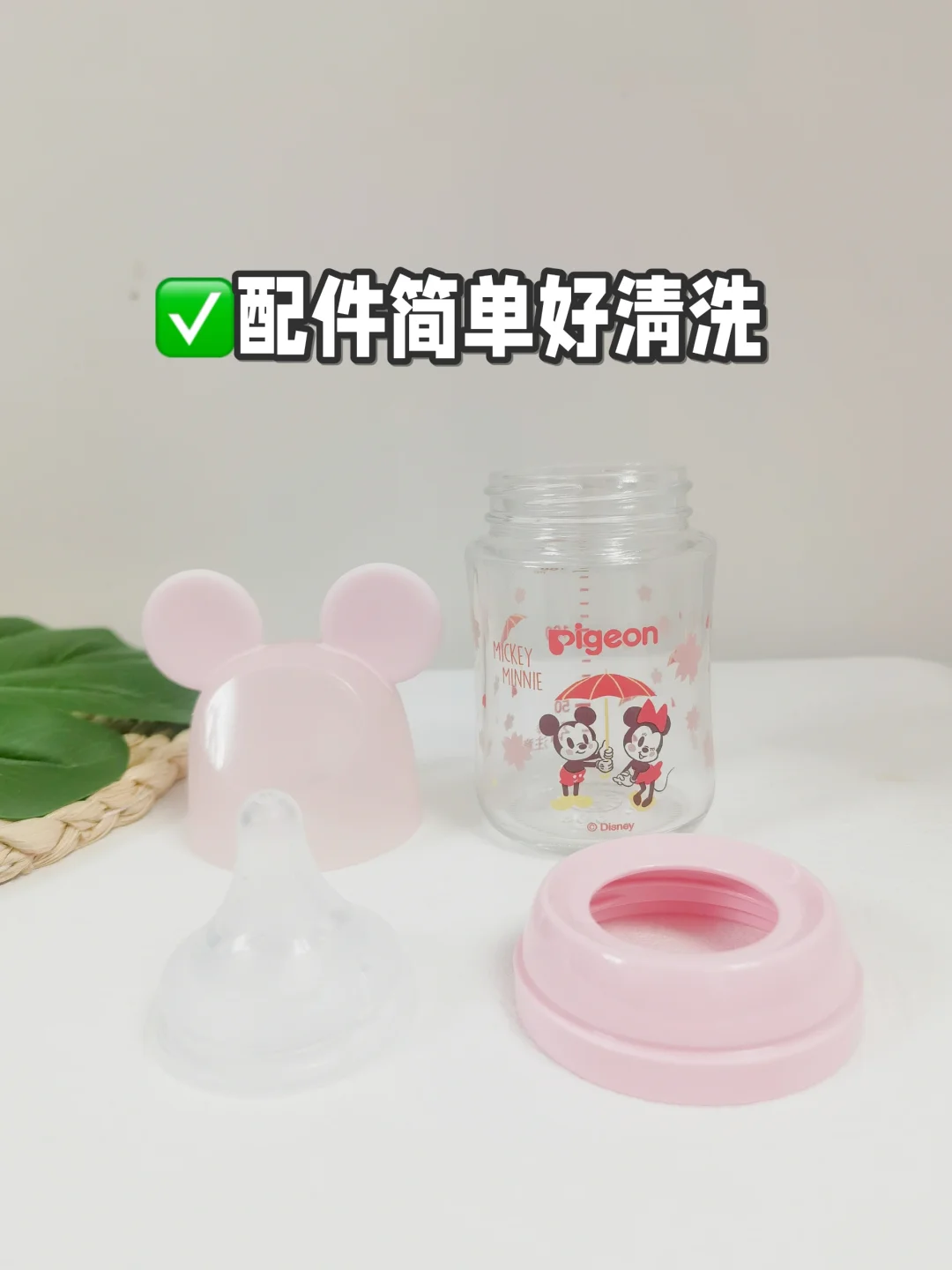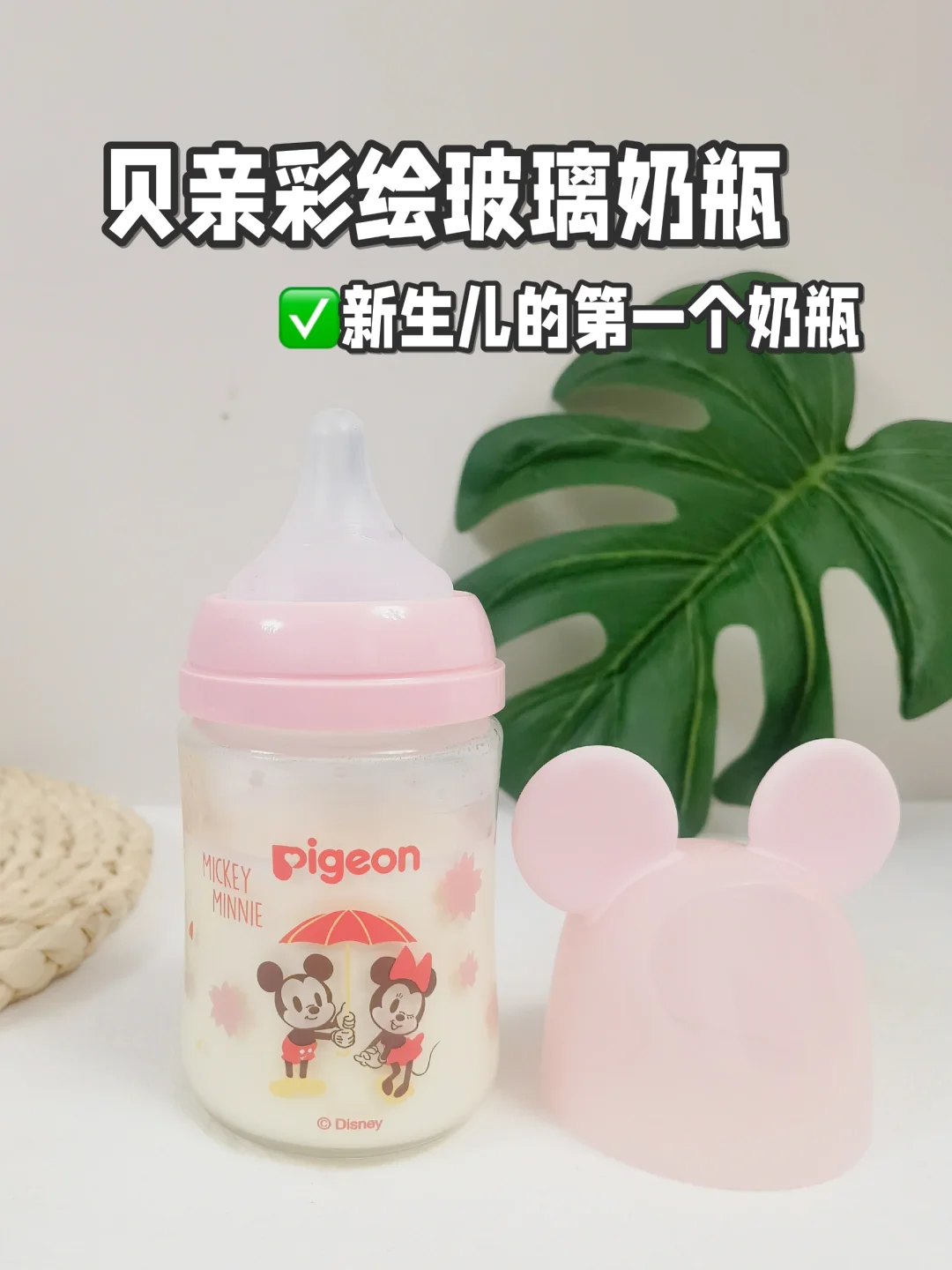 我家宝宝的第一个奶瓶是贝亲新生儿玻璃奶瓶,瓶身是迪士尼图案🐭🐭🐭,小小地握在手里特别可爱,它的奶嘴含衔线方便喂奶,只要宝宝含在这个位置,就不容易吞进空气,也不容易漏奶呛奶,SS号奶嘴11度柔软,仿佛妈妈般柔软,宝宝很容易接受