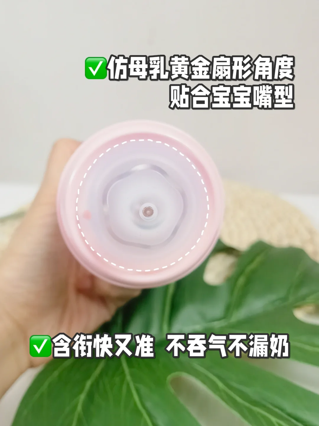 3⃣️奶嘴设计:最好是仿母乳奶嘴设计,宝宝更容易接受,这里的关键点在于奶嘴含衔设计,要贴合宝宝吸吮,不吞气不漏奶