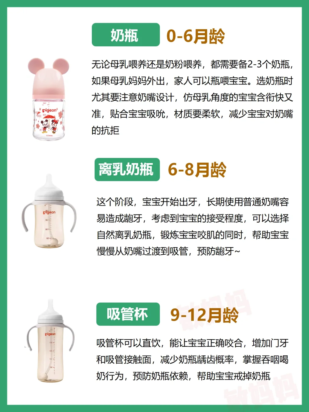 4⃣️奶瓶容量:新生儿胃容量小,1月龄单次奶量在80ml左右,2月龄单次奶量在100ml左右,3月龄单次奶量在120ml左右,选160ml奶瓶较合适