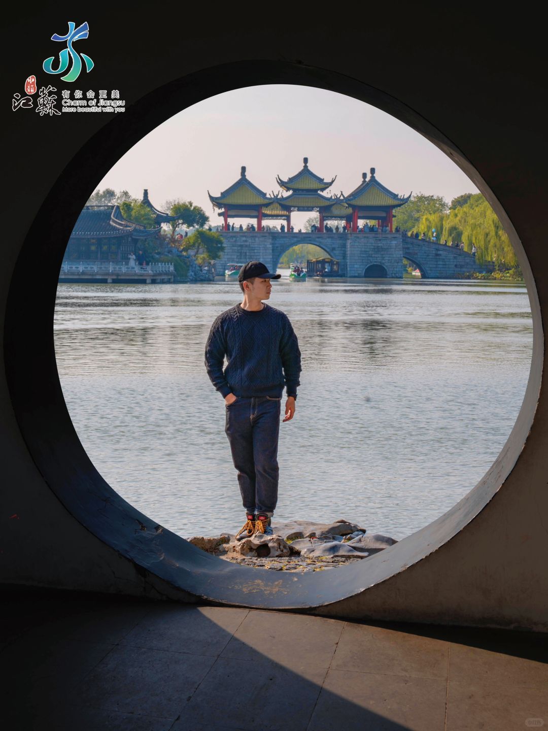有个经典拍照打卡机位是钓鱼台,“框景入画”这个角度可以将钓鱼台、五亭桥和白塔同时拍进去~