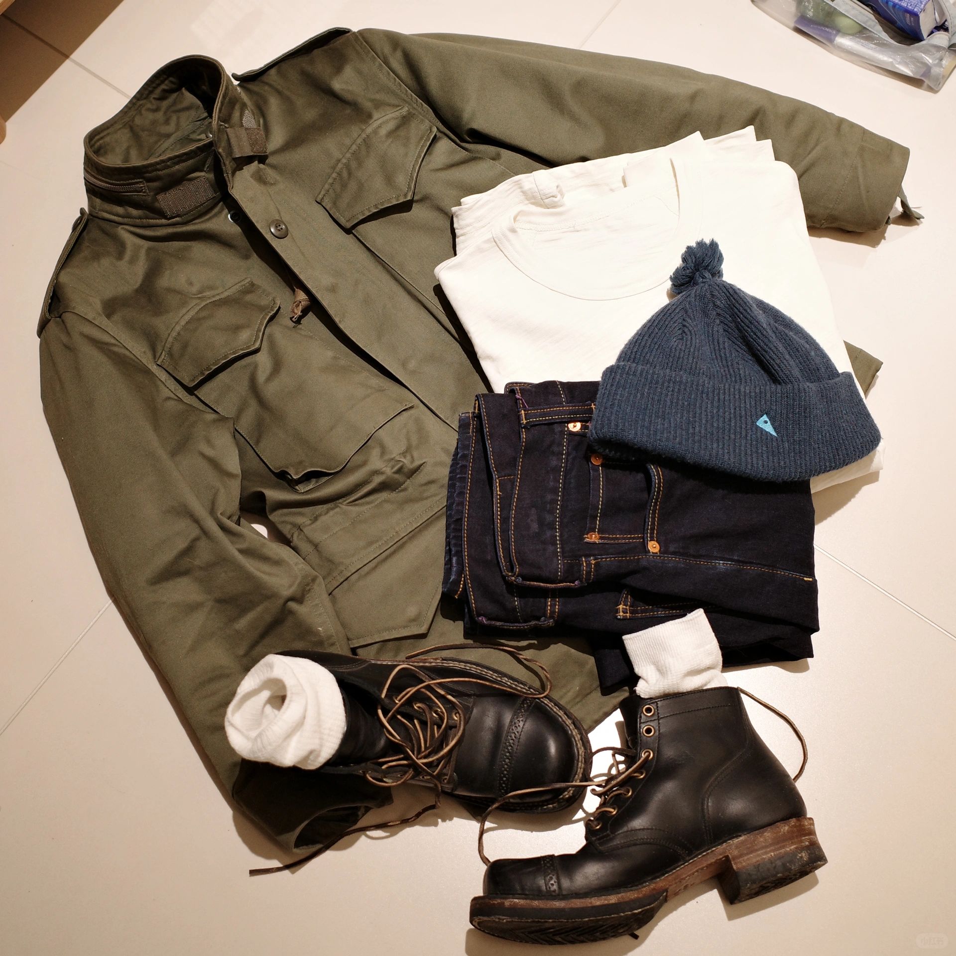 🧥外套:M65(电影《甜蜜蜜》里张曼玉穿过,很帅的) 这种版型没有原版,现在能买到的都是复刻或者vintage ,这件衣服越久越好看,也算是我今年购过很值的一件单品了(因为天天穿,半永久)