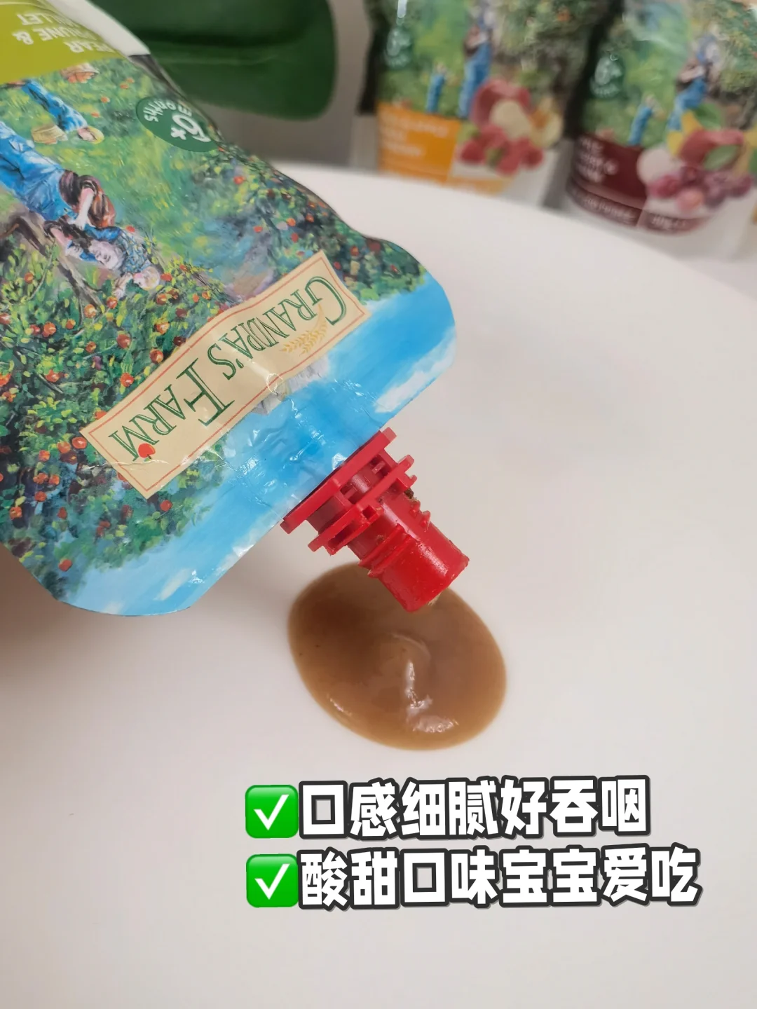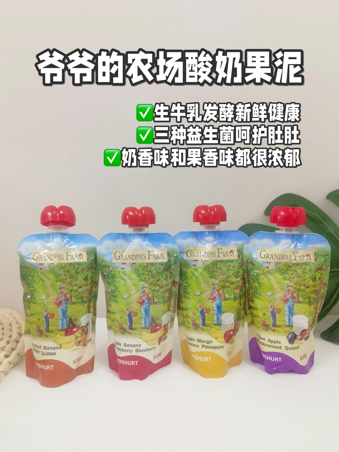 到了1岁左右,尝试了爷爷的农场酸奶果泥🧂,生牛乳发酵,含有三种益生菌,奶香味和果香味都很浓郁,酸酸甜甜,宝宝挺爱吃~