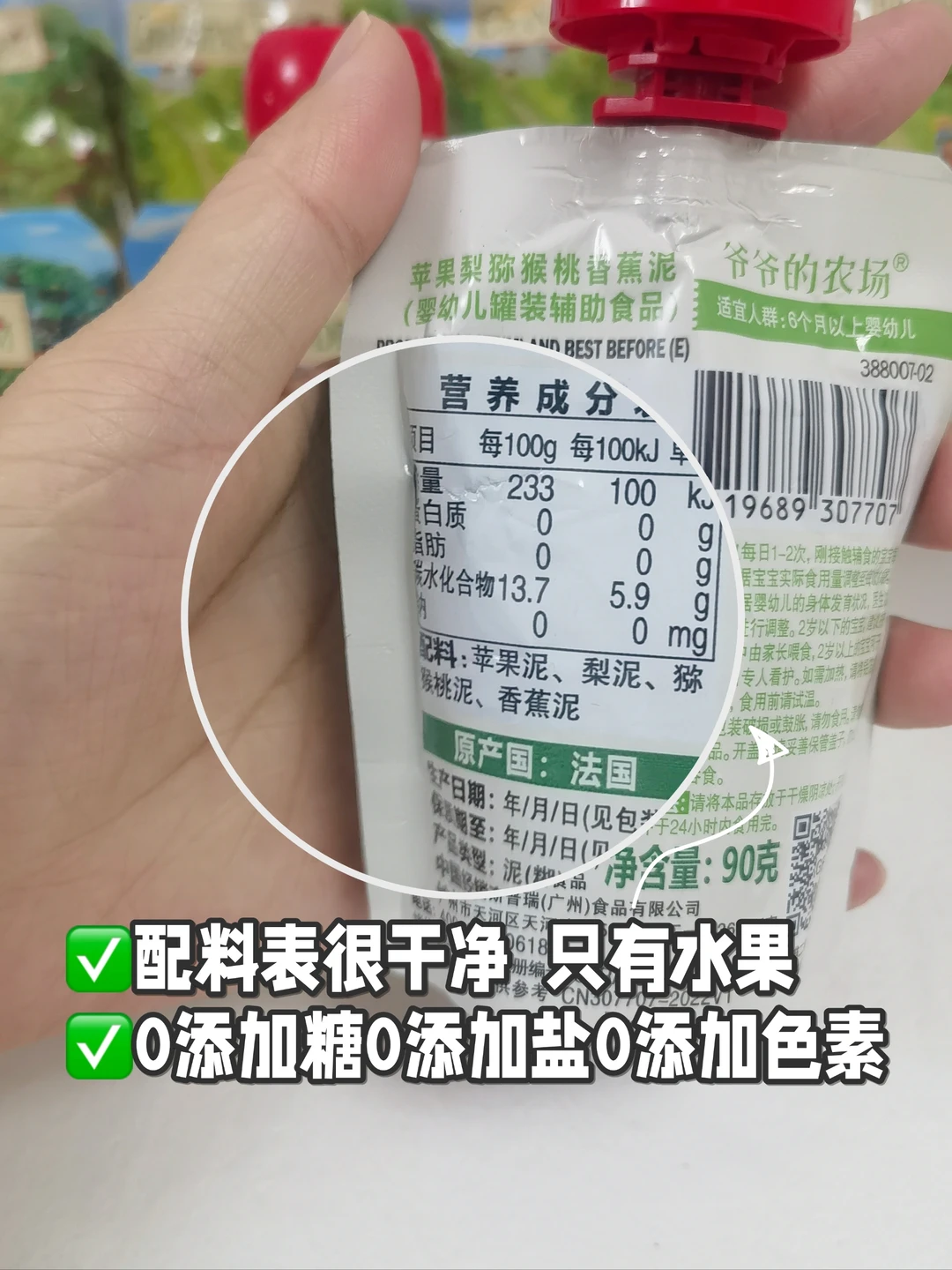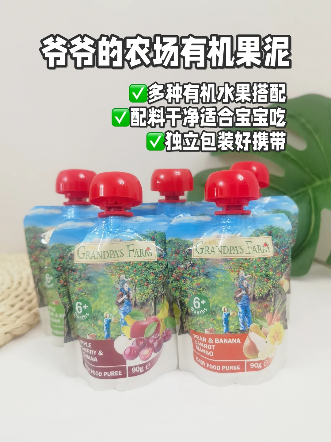 后来索性给我宝👧🏻选了爷爷的农场果泥,配料表比较干净,没有添加糖、盐、色素、水、浓缩柠檬汁等,独立包装外出携带也很方便哦