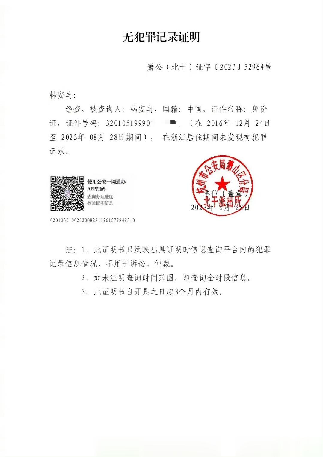 #韩安冉回应质疑#韩安冉回应无犯罪记录证明质疑:她16年来的杭州以后居住地、居住证、房子都是杭州的杭州,所以晒的是杭州的证明!关于户籍地南京无犯罪证明在16年之前也发过。 #韩安冉回应无犯罪记录证明质疑#